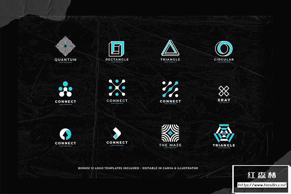 - 12 个徽标模板(可在 Illustrator+Canva 中编辑)