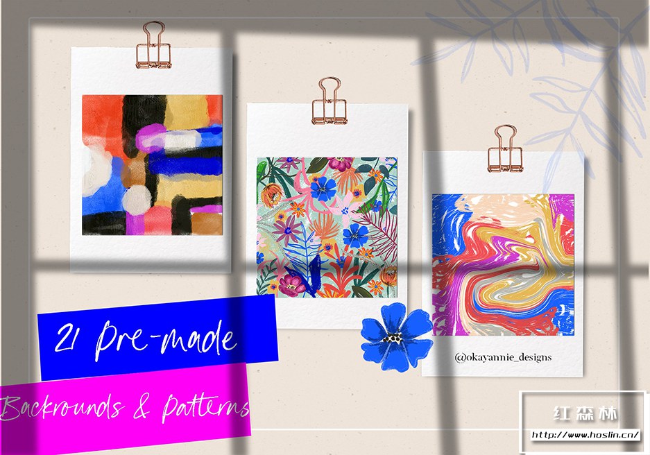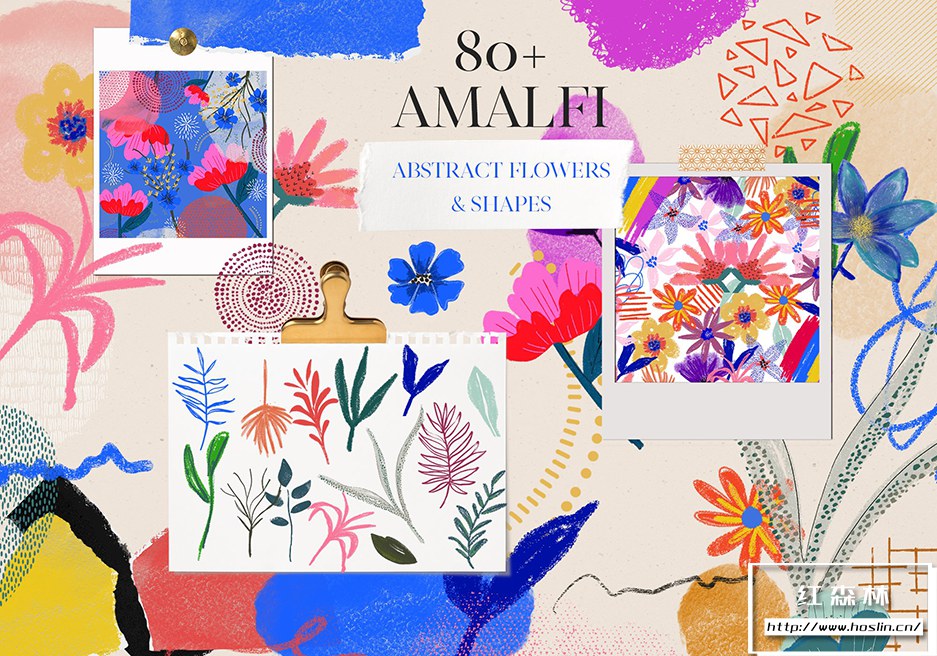 隆重推出Amalfi – 一个多功能的抽象花卉和形状系列,可让您为任何现代项目创作多样化的抽象艺术作品!一个华丽的系列,带有鲜艳的插图色彩、生育画笔、背景和图案以及额外的色样。