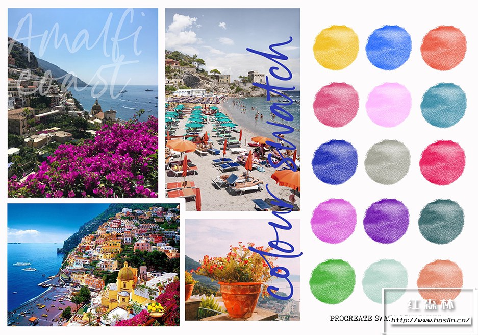 奖金:所有形状和花卉都包含在 83 Procreate 画笔套装中,如果您不在 Procreate 中工作就无法轻松使用。我知道我做不到!!!色板可放大Amalfi 海岸提供的惊人色彩。完美的插图集,可用于品牌、海报艺术、印刷品、包装、墙壁艺术、文具、标志设计、社交媒体帖子、Instagram、Pinterest、横幅、广告、封面艺术等等!