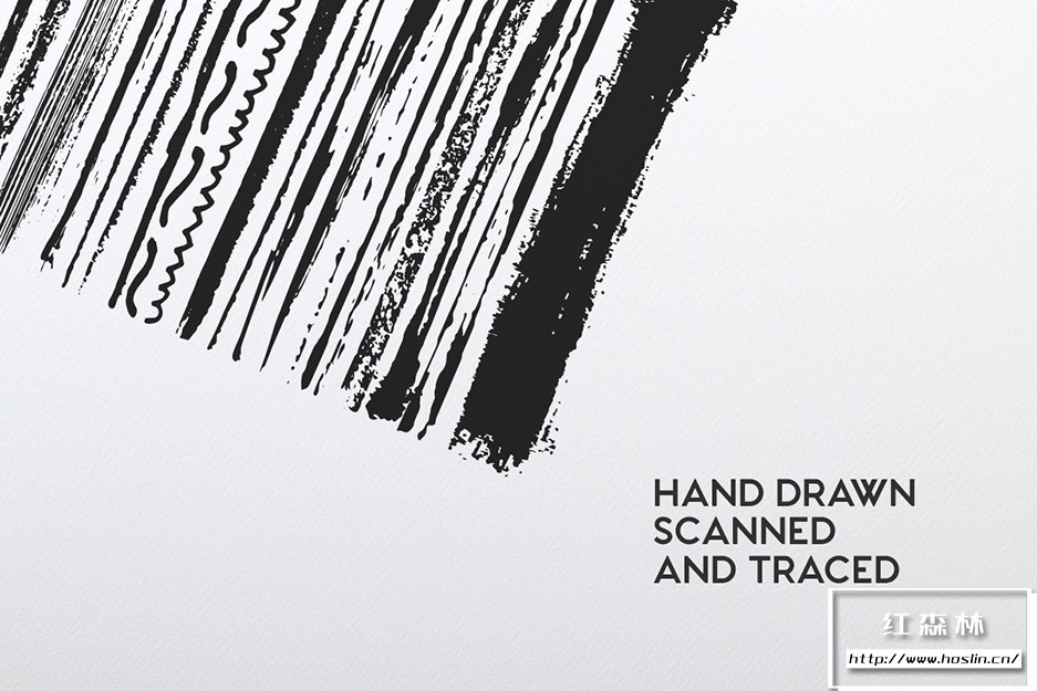这个庞大的画笔包包含一个多功能系列,对于任何插画师的武器库来说都是必不可少的。它包括木炭、画笔、铅笔、记号笔、水彩、书法笔和其他装饰画笔。所有这些都被手绘在纸上,经过扫描、描摹和清理以获得最终结果。