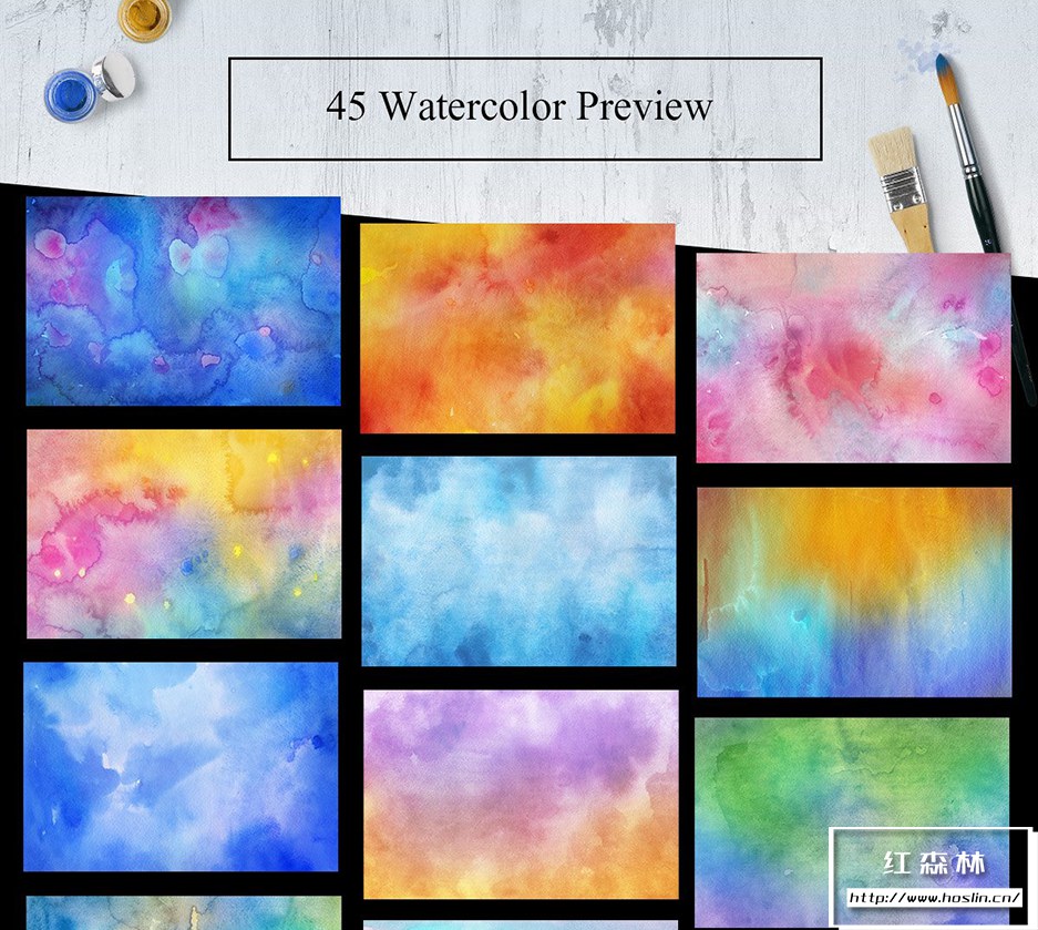 这是我新的一个水彩纹理集!他们有许多不同的颜色。完全手工制作,可爱又富有创意的外观。这 45 种水彩纹理非常适合品牌、数码纸、设计、平面设计,使用水彩抽象纹理为卡片、印刷、派对包、博客背景、纸工艺、派对邀请函、数字剪贴簿、相册背景和所有创意项目、美容项目等等。