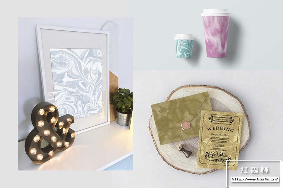 此套装包括 70 种不同的大理石纹、墨水、水彩、银色、青铜色、金色、干净和柔和的彩色背景,非常适合从网站或横幅到任何类型的纸质文具、海报、明信片、笔记本、名片、请柬、包装等。我还使用相同的大理石和闪光图案设计了一些眼镜、名片、T 恤、信封和几个包装。因此,如何使用它们完全取决于您,它们在您能想到的任何东西上看起来都很棒。可能性是无止境!
