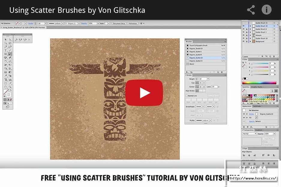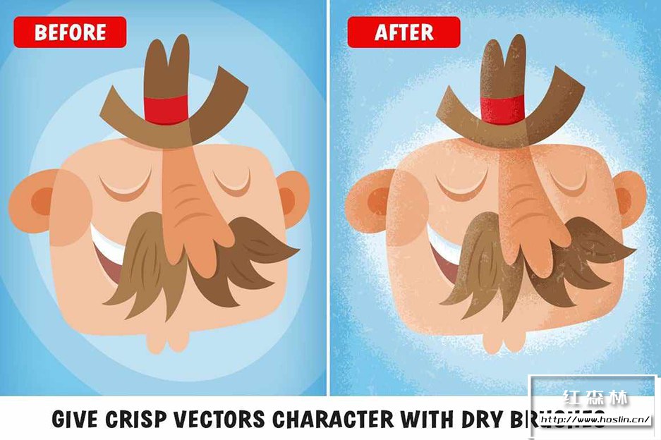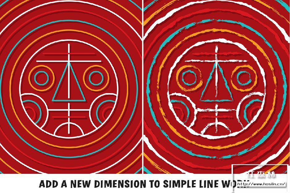 Illustrator 的优点之一是它为您提供清晰的可缩放图形。但有时您的线条作品看起来过于干脆利落。例如,查看前后图像中的部落插图。干净利落的线条看起来很不错。但由于它是部落设计,因此线条不那么尖锐和清晰是有道理的。从 15 种有机线条画笔中选择一种,您的作品会立即呈现出更加粗犷的插图风格。