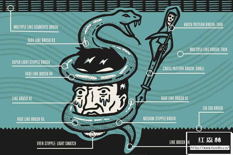 - 用画笔创造这一切。我们提供了创建手绘插图所需的所有画笔,而无需离开 Illustrator 的舒适环境。您甚至可以抓起 The Vector Brush Toolbox 来增强您的矢量画笔功能。