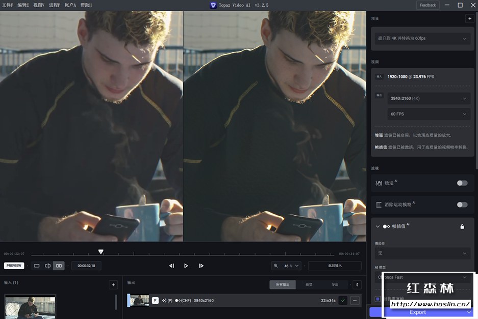 广受好评的视频AI画质增强软件 Topaz Video Enhance AI 迎来全新升级,并更名为“Topaz Video AI”。使用新的稳定模型、更智能的工作流程和改进的视频增强功能进行重建。Topaz Video AI让您可以无限制地访问世界领先的生产级神经网络,用于视频放大、去隔行、运动插值和抖动稳定——所有这些都针对您的本地工作站进行了优化。
