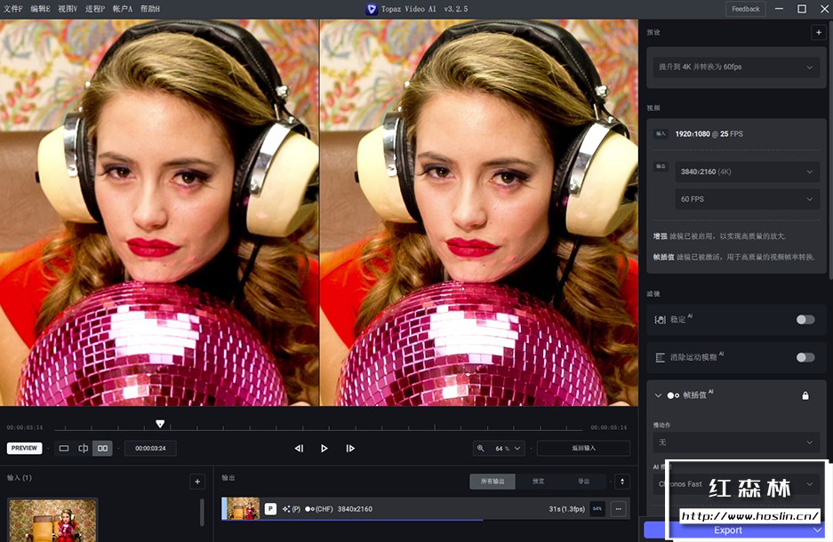 - AI 驱动的抖动稳定:Topaz Video AI的视频稳定模型还处于早期阶段,但在许多情况下仍比行业领导者表现更好。