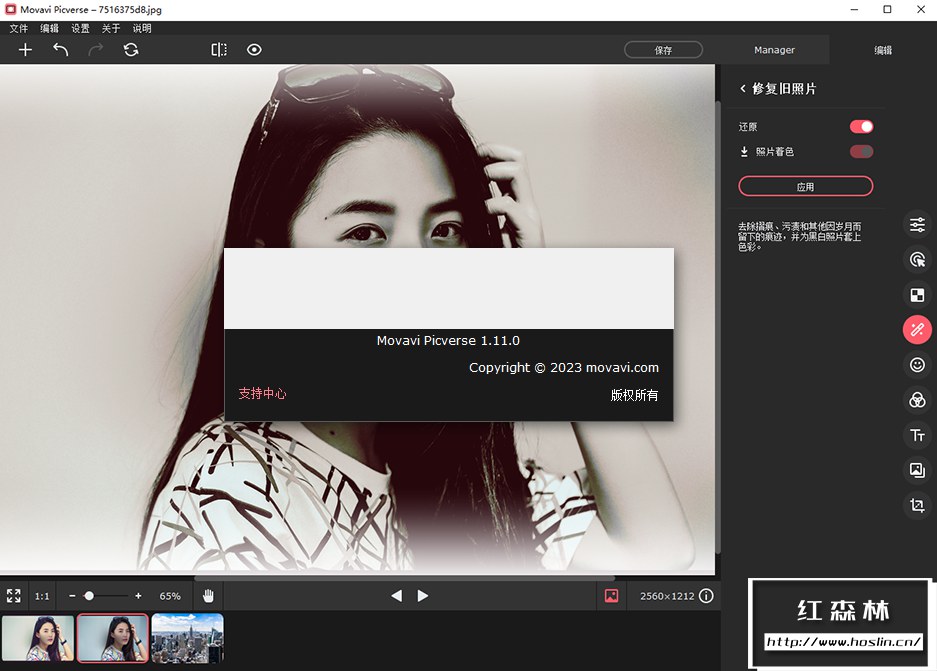 同时软件拥有超多实用功能都已经和谐,可以免费使用所有功能,涵盖还原旧图片、去除斑点、增强照片、去除图片中的物体、修复模糊照片等,提供了基于AI的智能工具,让用户可以尝试编辑图像并快速获得惊人的效果。软件支持轻松修图,美化照片,更改背景等一系列基于AI的便捷工具,中文的操作方式,对于新手来说更加的人性化,简单的操作方式将您的照片变成完美作品,并且不必掌握复杂的照片编辑应用程序即可消除瑕疵。除此之外,当你重要的图片出现瑕疵、折痕、污点等痕迹,可以使用Movavi Picverse破解版轻松修复损坏的图像,编辑倒带时间并以数字方式还原旧照片,功能非常强大。软件基本上支持编辑任何需要修复的照片,扫描照片并尝试自动修复照片,进行所需更改之后将高清图像保存到本地,也可以使用高级编辑工具进行手动更正。