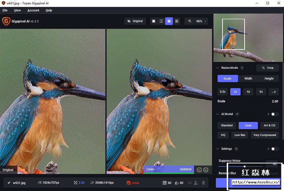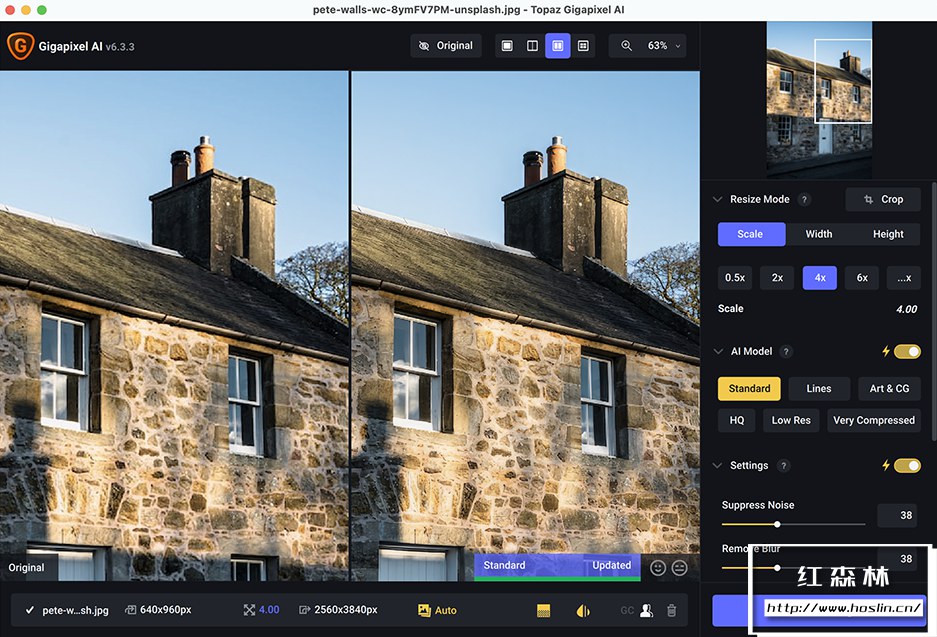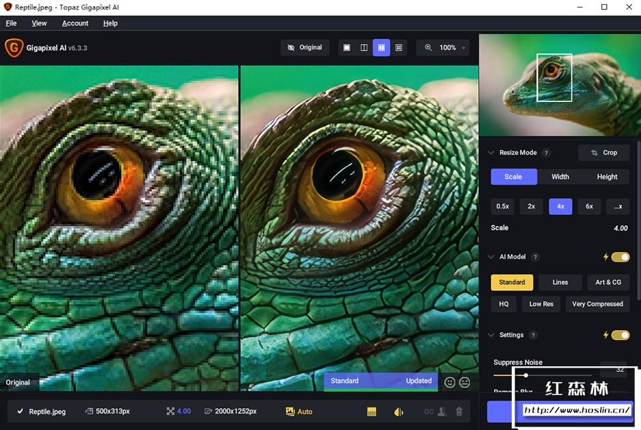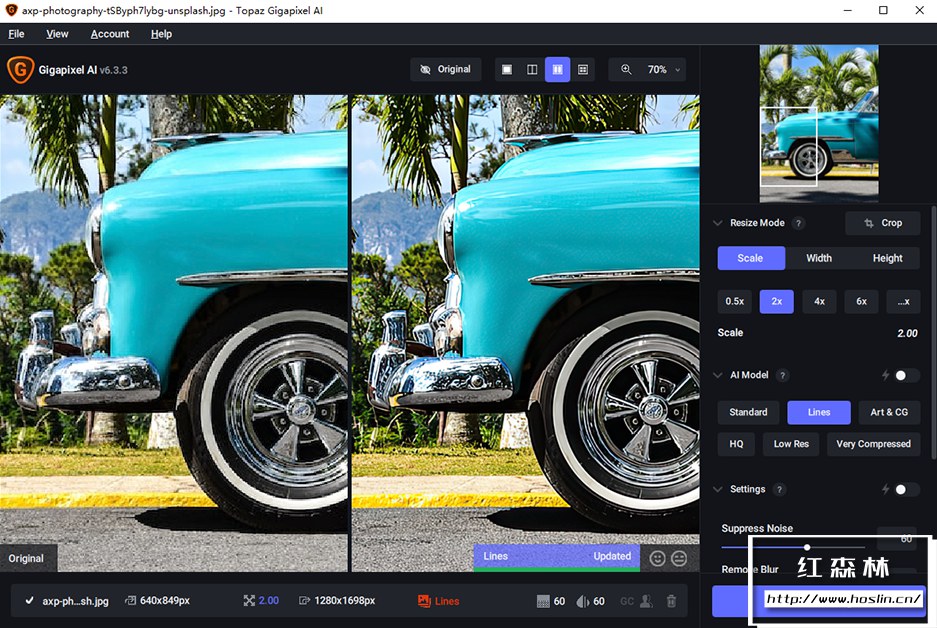 当您将一张低分辨率图像导入 Gigapixel AI 并选择放大倍数(最高可达600%)后,软件并非简单地拉伸像素,而是启动其AI模型进行分析。它会: