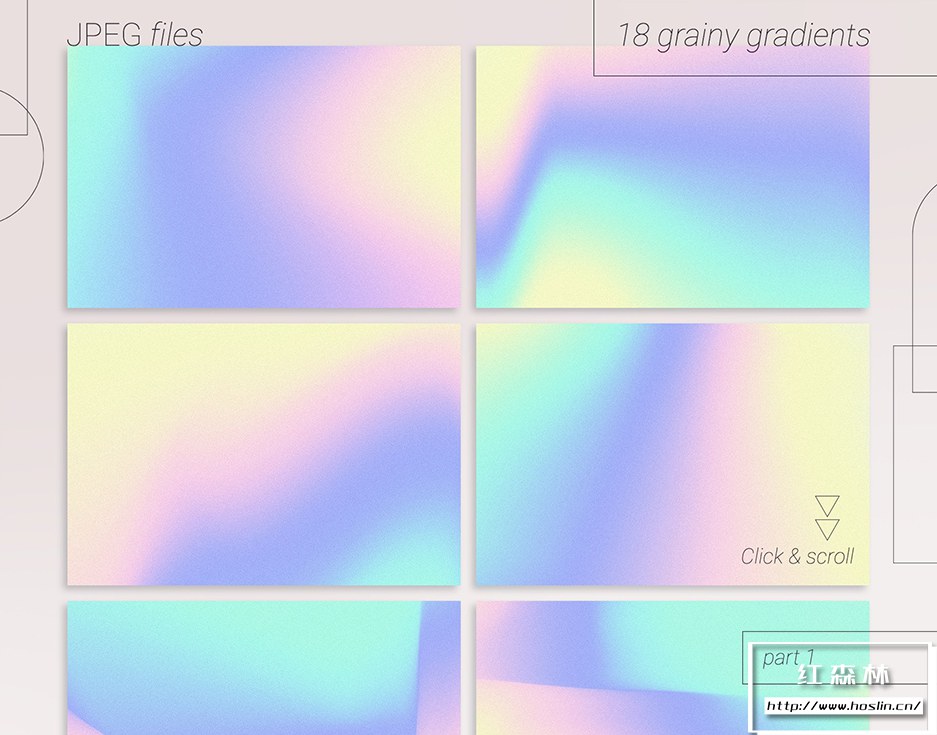 - 18 个颗粒状渐变(JPEG 文件,3000×2000 像素/300 dpi)