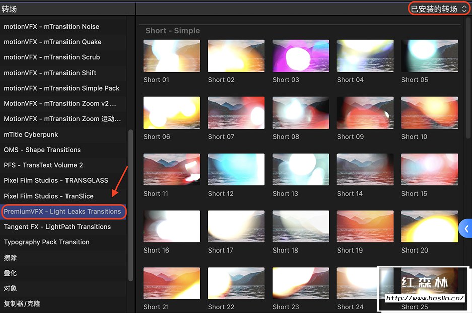 Light Leaks Transitions 是一个使用真实 4K 漏光素材的包,可以快速为您的视频增添优雅和创意外观。可自定义且易于使用,只需将其拖放到您的时间线即可使用。它们包括90种真实镜头漏光光效转场过渡动画:60个转场插件、30个在字幕中以调整层方式使用的光效转场。可设置光效透明度、翻转和颜色。