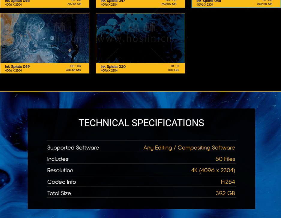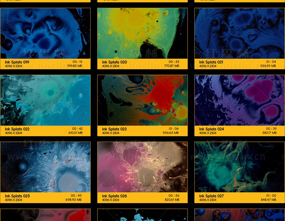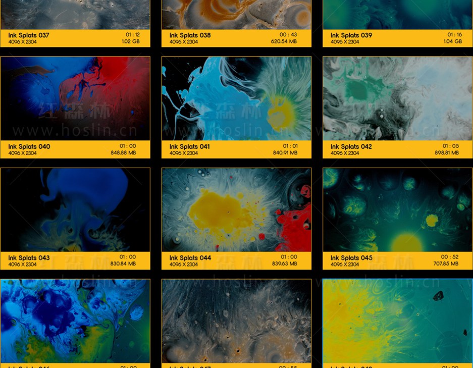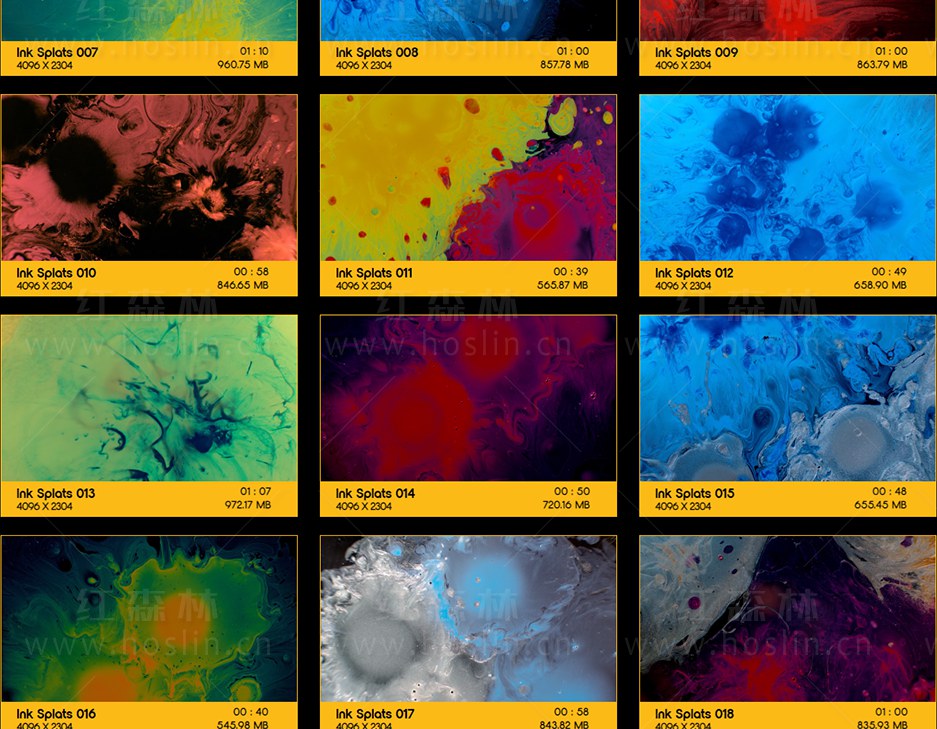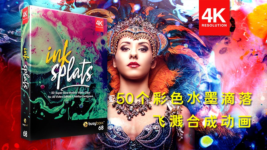 50个超级慢动作彩色水墨流体运动滴落飞溅散开特效合成动画,瞬间优雅,生动欢快,又不失神秘…将您的项目变成杰作。Ink Splats 使用最新的Phantom 4K Flex Camera 摄影机拍摄,1000FPS将在编辑时为您提供惊人的灵活性,50个迷幻的镜头让您的创意源源不断。Ink Splats 非常适合背景动画,特效合成,文本显示等。素材没有透明通道,可修改混合模式(屏幕/滤色)即可与你的视频素材叠加使用。
