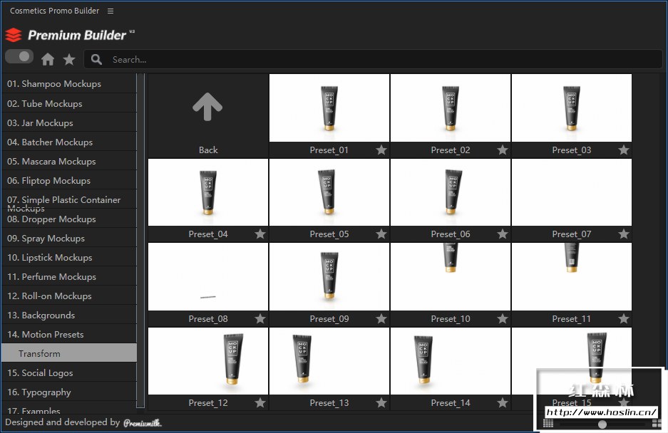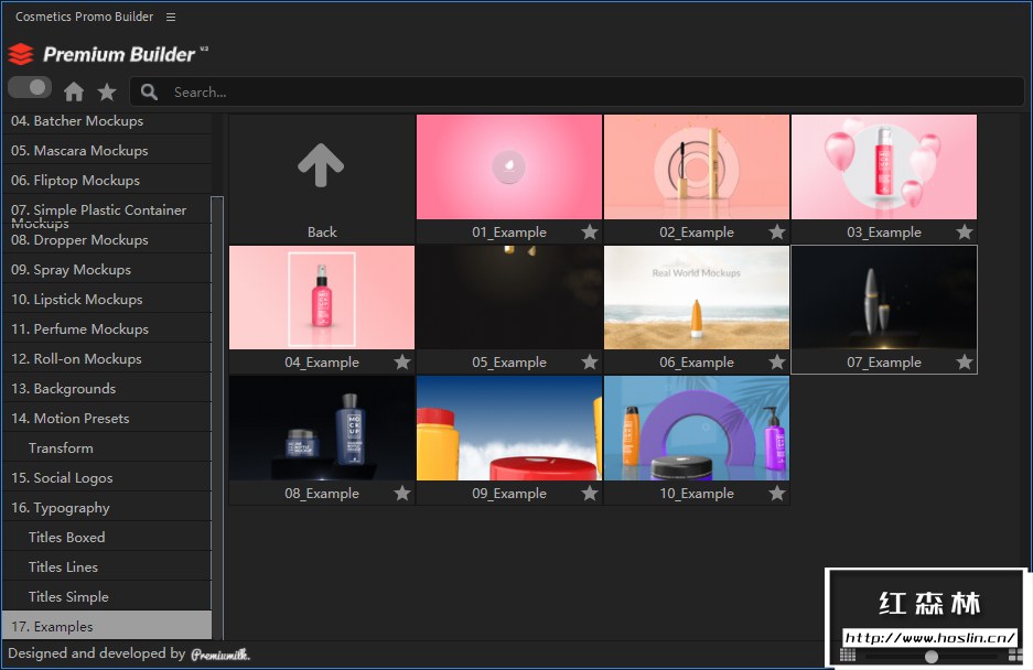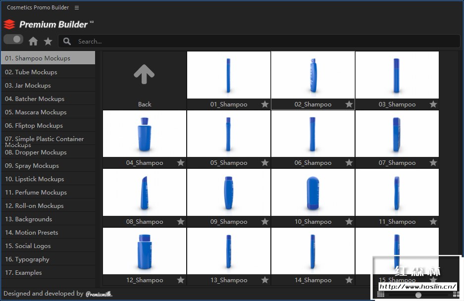适用于After Effects的最通用的化妆品展示模板,查看和导入100多个真实的3d模型,包括:洗发水容器、管子、罐子、配料器、睫毛膏、翻盖瓶、简单的塑料容器、滴管、喷雾剂、口红、香水、滚珠和其他更多!关键帧、颜色和样式的无尽且用户友好的自定义选项。它是这样工作的:选择所需的模型,放置您的设计,添加背景,选择动画,然后您就可以开始了。让您的项目更快、更轻松,同时看起来仍然独一无二!Cosmetics Promo Builder 拥有脚本和模板两种使用方式。