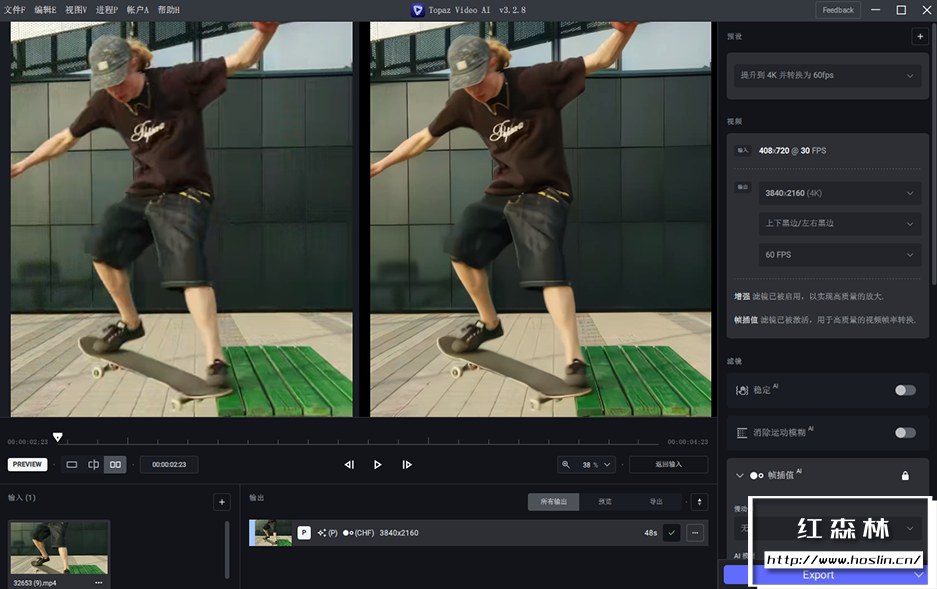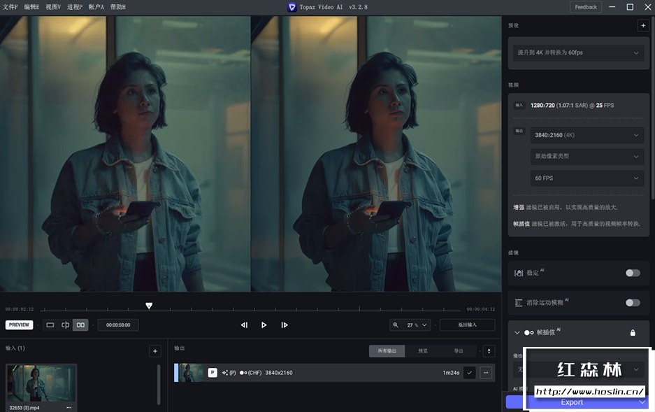 - AI 驱动的抖动稳定:Topaz Video AI的视频稳定模型还处于早期阶段,但在许多情况下仍比行业领导者表现更好。
