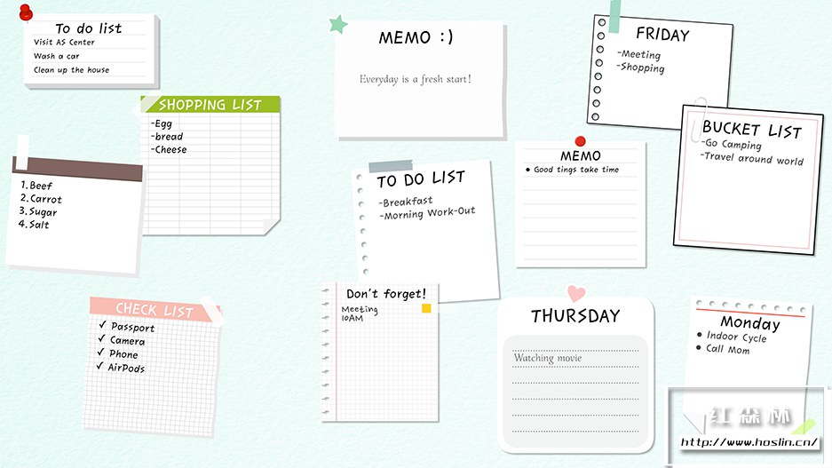Memo Pads 插件包含12种备忘录便签、记事本、便利贴标签贴纸动画,使用简单可自定义文字。