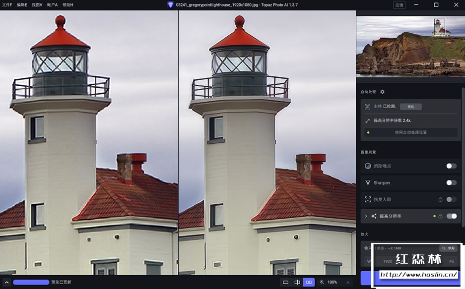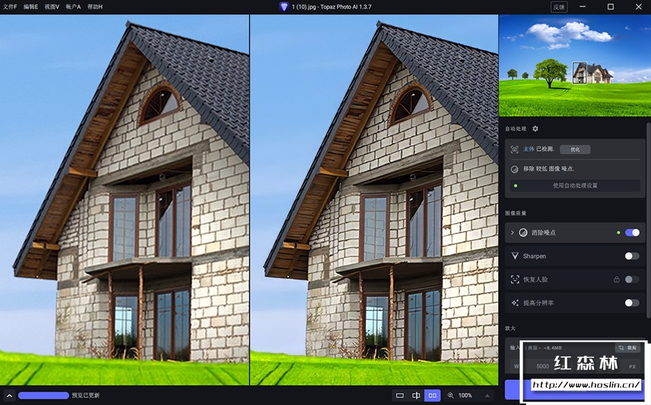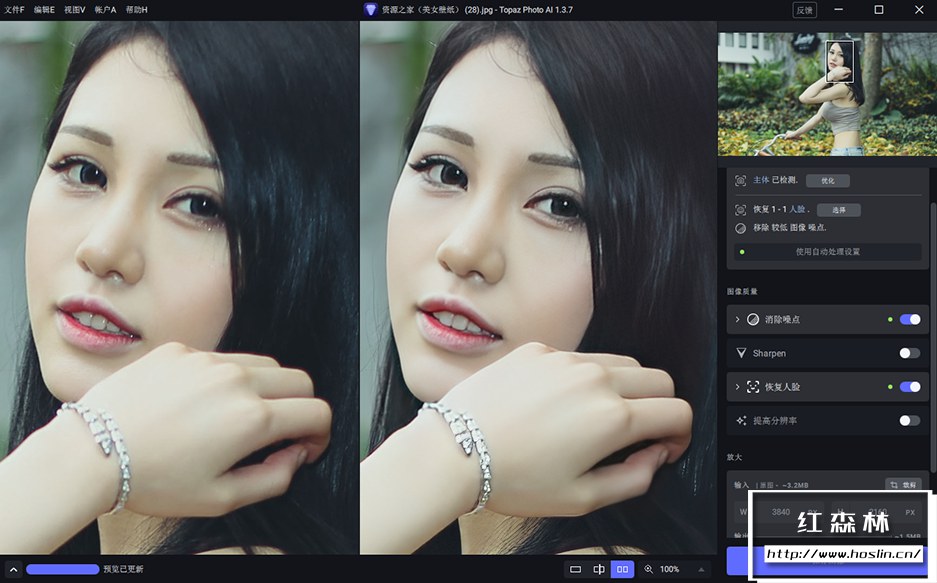 降噪(Topaz Denoise AI)在从数百万张图像中学习后,Topaz Photo AI 的降噪模块可以自动识别您图像的内容。它可以准确的确定真实图像细节和噪点之间的差异,准确度惊人。当然,并非所有图像都会有噪点,对于那些,Topaz Photo AI 将为您提供现代技术所能提供的最佳结果。