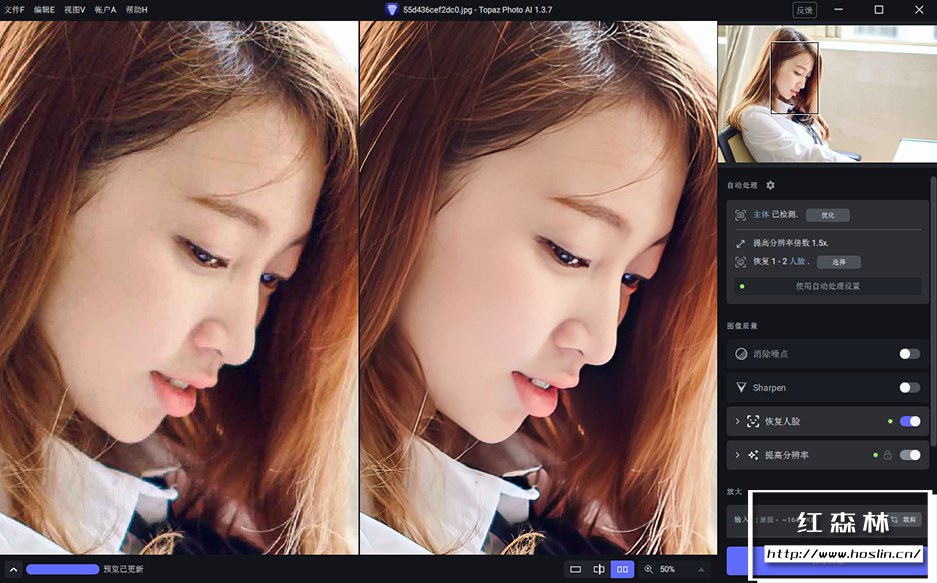 锐化(Topaz Sharpen AI)当您的主题模糊时,您并不一定有机会重拍。在这种情况下,请使用Topaz Photo AI 确保您的照片尽可能清晰。Sharpen AI 模块不像传统的锐化那样认为的增加边缘对比度,而是自然的逆转模糊的根本原因(相机抖动、运动模糊、对焦不正)以创造更自然的结果。在没有模糊的情况下,清晰度仍然存在 – 清晰的细节,没有边缘光晕或其他伪影。