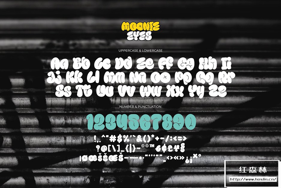 Moonie Eyes 是一种手写字体,具有受街头艺术标记启发的自发曲线。字母起泡并相互堆积,成为涂鸦字母中的强大字符。您可以玩单独的角色或相互重叠。