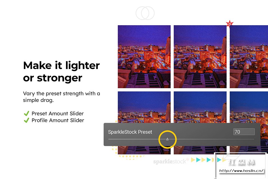 - ✔️ 可调节强度,支持 Lightroom 的“预设量”滑块