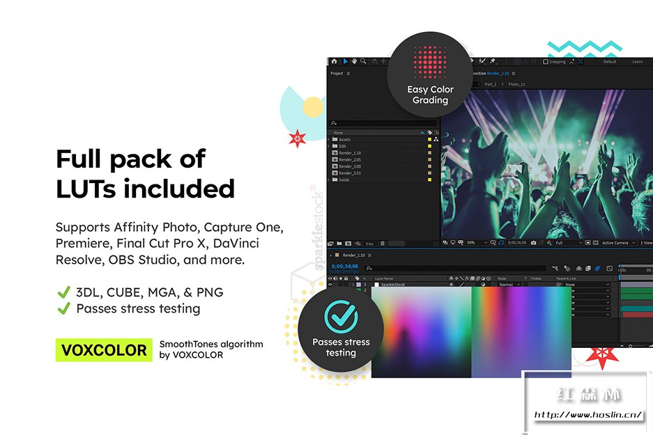 - SparkleStock LUT与 Affinity Photo、Premiere Pro 22.0+、Final Cut Pro v10.4+、DaVinci Resolve、Avid Media Composer、Cyberlink ColorDirector、OBS Studio、Vegas Pro、Spark AR Studio、Nuke、Filmora 兼容