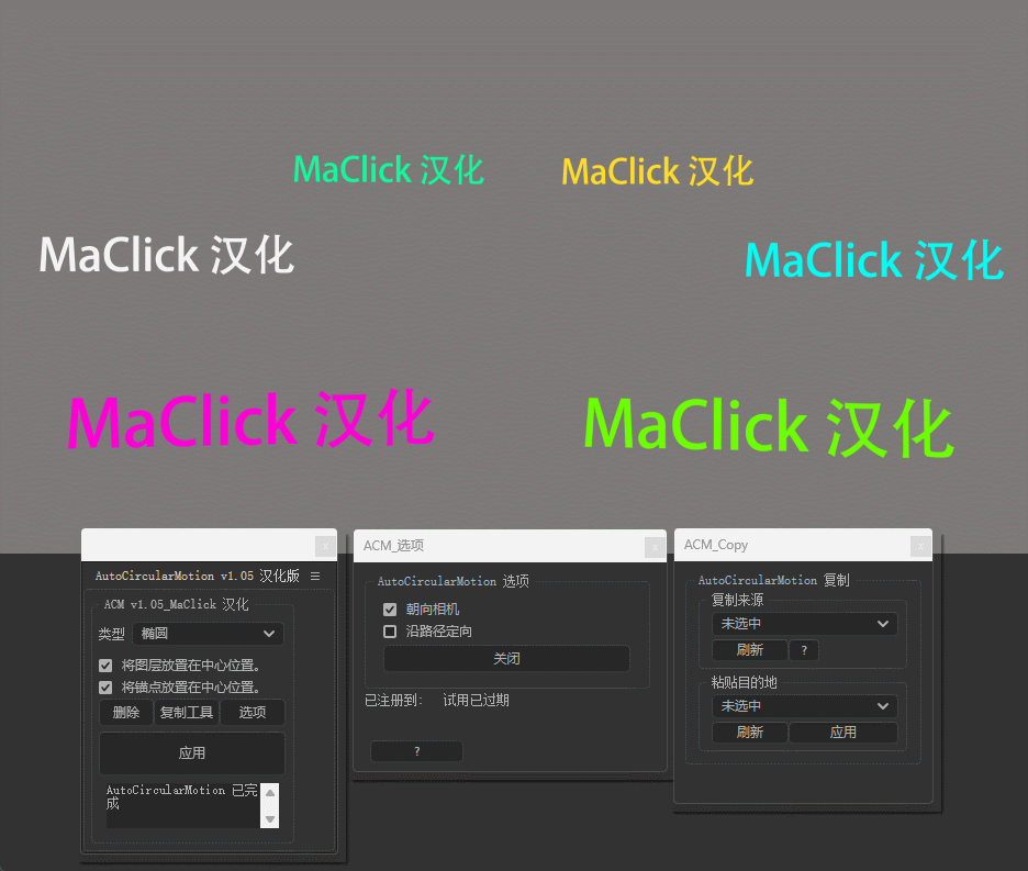 AE脚本 AutoCircularMotion(自动循环运动)允许您轻松表达圆周运动效果。如圆环排列,DNA串效果,跟踪动画,指向跟踪动画等MG动画效果,AutoCircularMotion可以链接多个图层和排列其运动,您还可以设置其他运动,如摆动和弹跳。控制 Z 轴还允许您表达运动的浅度或深度。