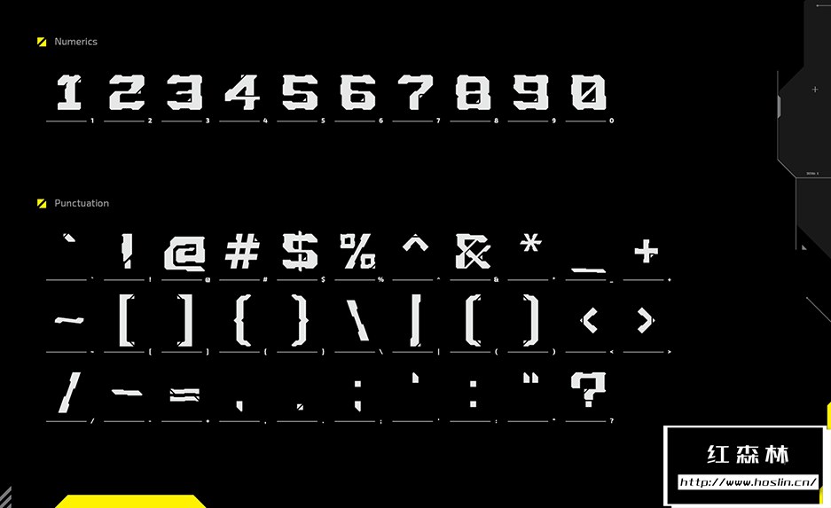 包含在这个字体中:◢ 大写字母 ◢ 小写字母 ◢ 数字 ◢ 32 个标点符号