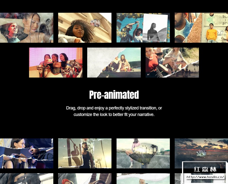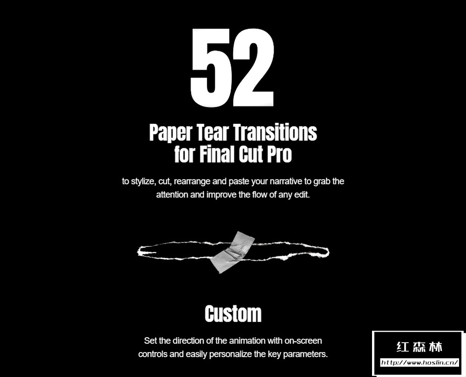 mTransition Paper Rip 插件包含Final Cut Pro的52个撕纸过渡转场预设,采用拼贴元素,可以自定义图片视频、颜色、大小位置等多种参数。高端纸张撕裂纹理和效果、节省时间的工作流程助推器!探索大气的老式相机闪光灯效果,添加胶片颗粒效果,唤起情绪,引发反应!使用屏幕上的控件设置动画的方向,并轻松个性化您的创意。