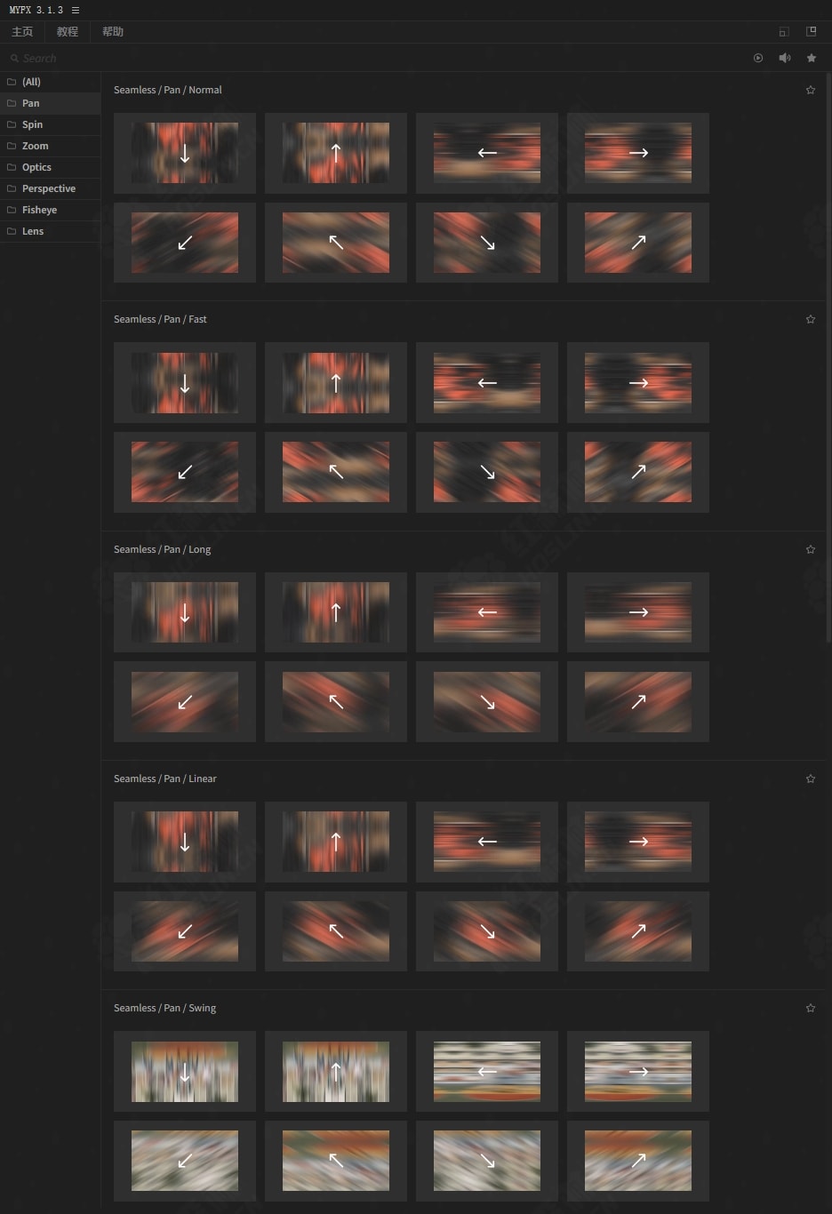 每个过渡都有其独特的内置目标、运动和效果控制器。从Essential Graphics面板,您可以在几秒钟内轻松修改每个过渡,即使您是 Premiere Pro 的新手。该项目带有目标、运动、颜色和效果控制器,它们对于每个类别和过渡都是唯一的。它使您能够真正自定义镜头之间的过渡。这将为您提供更大的灵活性,以实现完全原创且仅属于您的独特外观。使用MYFX脚本调用预设,可视化预览,需要什么直接点击即可加载到时间线。