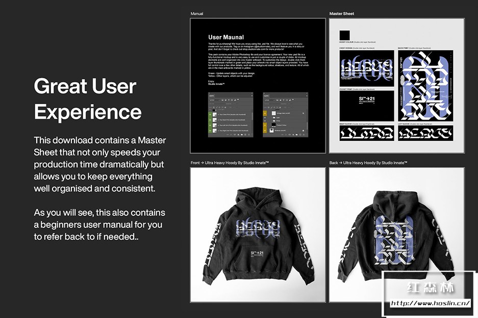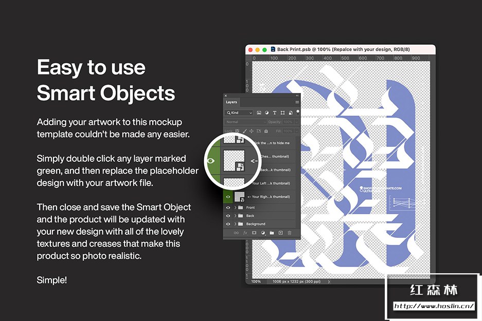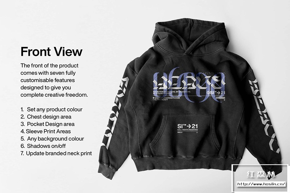 Ultra Heavy Hoodie 包含一个完全可定制的 Adobe Photoshop 模型。通过更新图层面板中以绿色清楚标记的每个智能对象中的内容,轻松应用您的设计或徽标。每个智能对象都已设置为与织物一起变形并继承织物纹理和折痕。您还可以使用颜色选择器将背景和产品颜色更改为您喜欢的任何颜色。