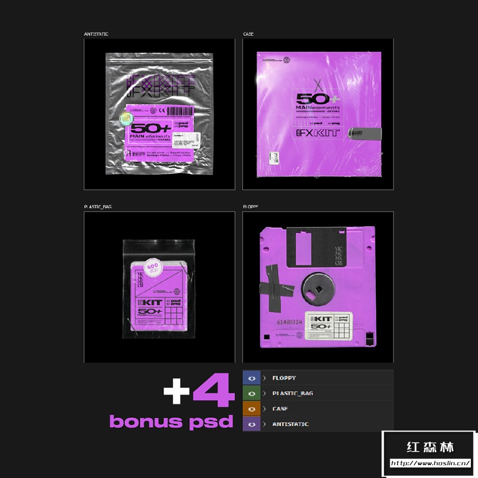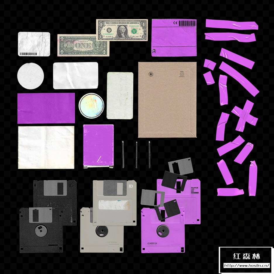 100+专辑封面塑料薄膜软盘胶带铝箔袋包装做旧贴纸火柴盒等复古元素PS设计套件 Vicmcmxciii – GFX KIT,每个文件都是原始的,扫描和手工切割,充满爱♥600 DPI ~ 3000×3000 纹理