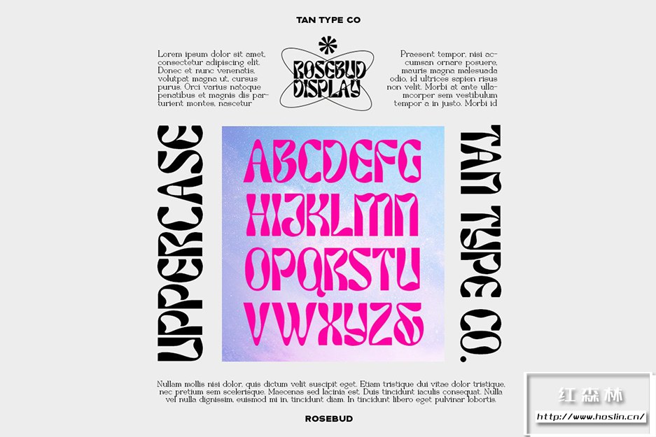 Tan-Rosebud 是一种复古风格的字体。一种带有许多迷幻色彩的现代字体,非常适合发表声明。.otf/.ttf格式,多语言支持(不含中文)