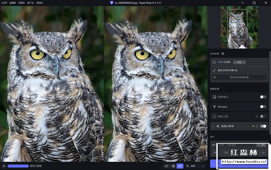 锐化(Topaz Sharpen AI)当您的主题模糊时,您并不一定有机会重拍。在这种情况下,请使用Topaz Photo AI 确保您的照片尽可能清晰。Sharpen AI 模块不像传统的锐化那样认为的增加边缘对比度,而是自然的逆转模糊的根本原因(相机抖动、运动模糊、对焦不正)以创造更自然的结果。在没有模糊的情况下,清晰度仍然存在 – 清晰的细节,没有边缘光晕或其他伪影。