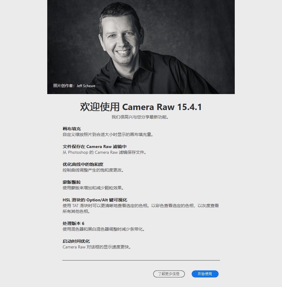 • 启动时间优化:Camera Raw 对话框的显示速度更快。