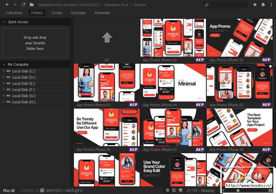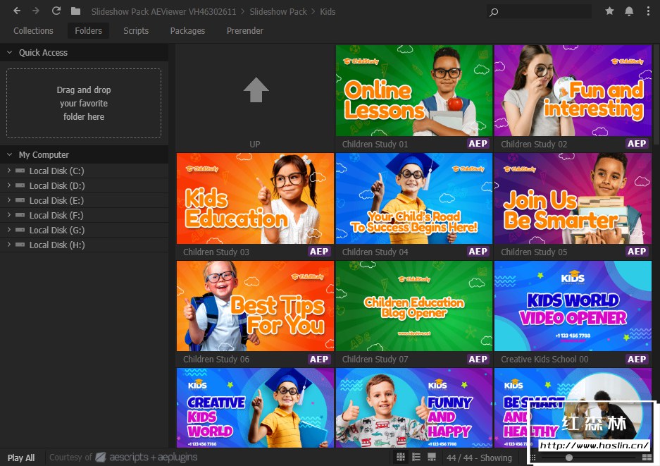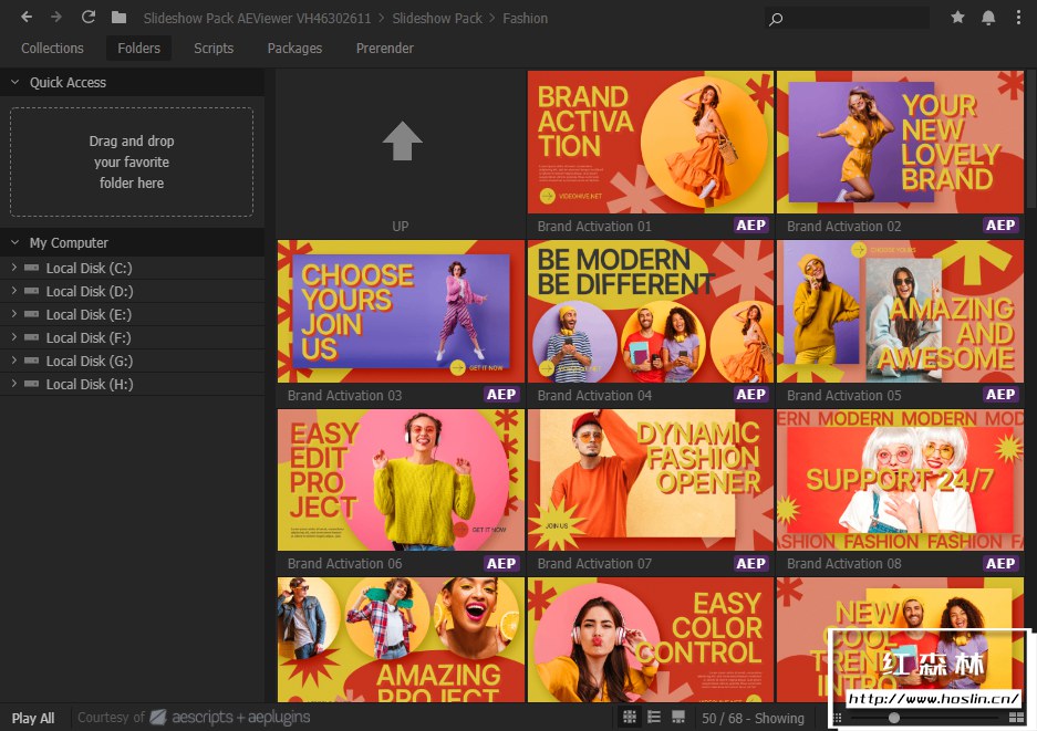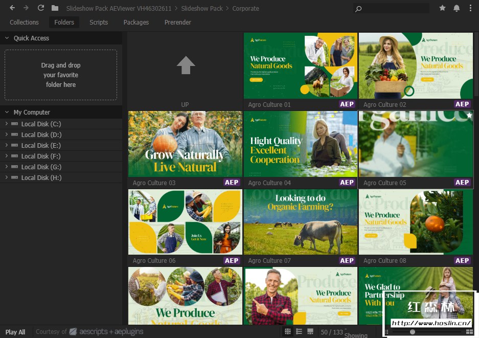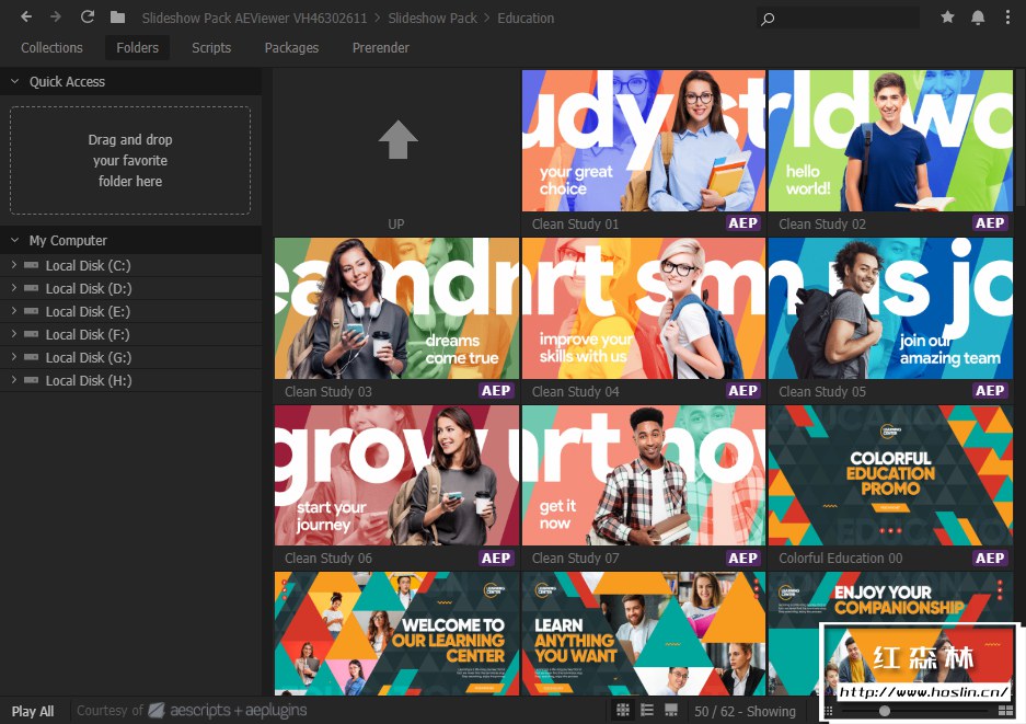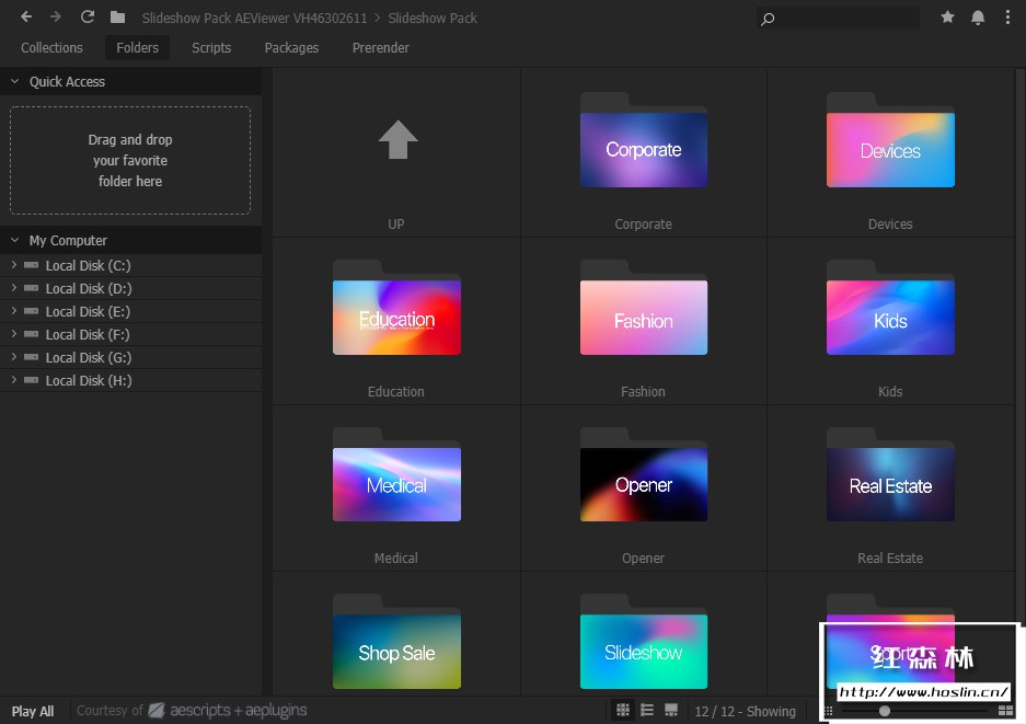 Slideshow Pack 拥有650个独特优雅的设计场景,支持快速渲染,使用AEViewer脚本调用,可视化管理预览直接点击即可使用。