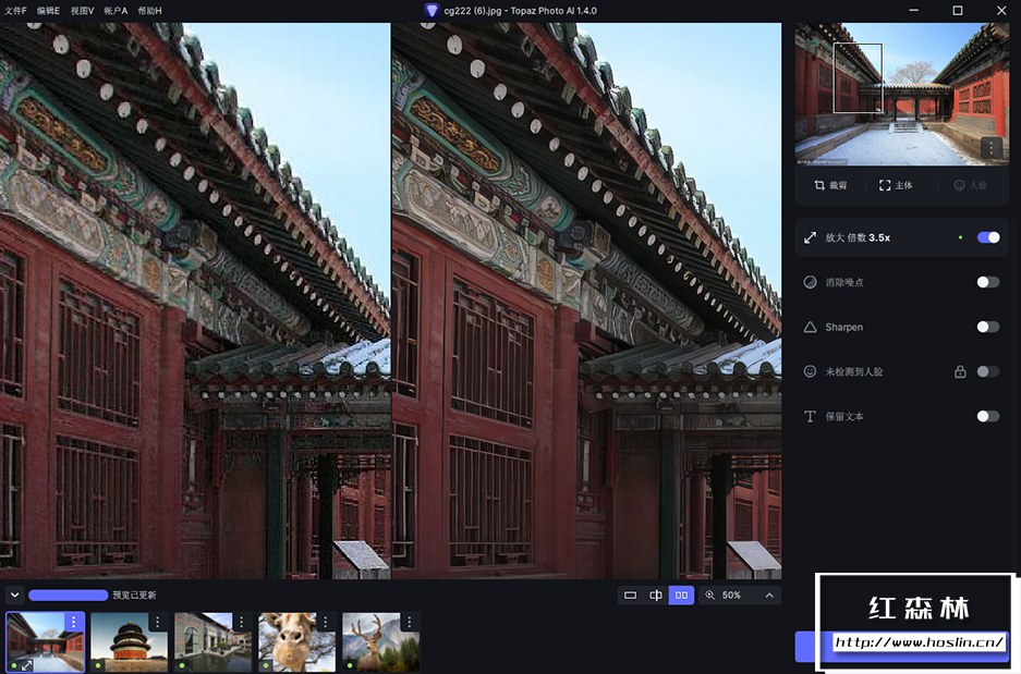 图像增强放大(Gigapixel AI)通常,放大低质量图像只会得到(更大的)低质量图像。而Topaz Photo AI 是不同的。放大时,它会记住数百万张相似图像中的真实细节,并根据这种理解自然地填充缺失的像素。这就像你如何在不亲临朋友面前的情况下描绘朋友的脸。这意味着您可以为您的照片添加真正的分辨率,以获得更紧密的裁剪或更鲜艳的打印效果,以及以前不可能的出色图像质量