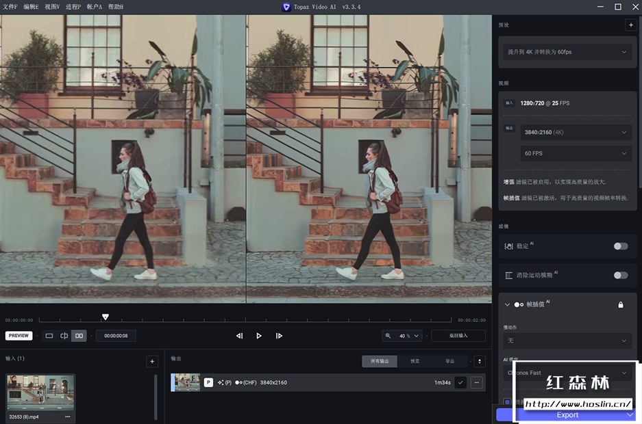 - AI 驱动的抖动稳定:Topaz Video AI的视频稳定模型还处于早期阶段,但在许多情况下仍比行业领导者表现更好。
