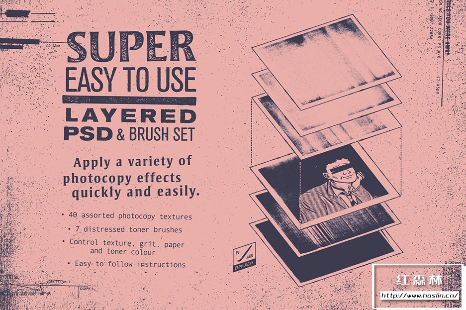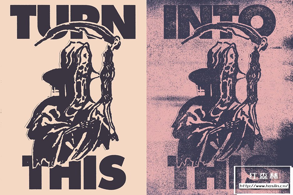 - 按照你的方式去做!使用方便的智能 PSD 或将影印纹理添加到现有的 Illustrator 或 – Photoshop 文件(包含纹理库和画笔集)。