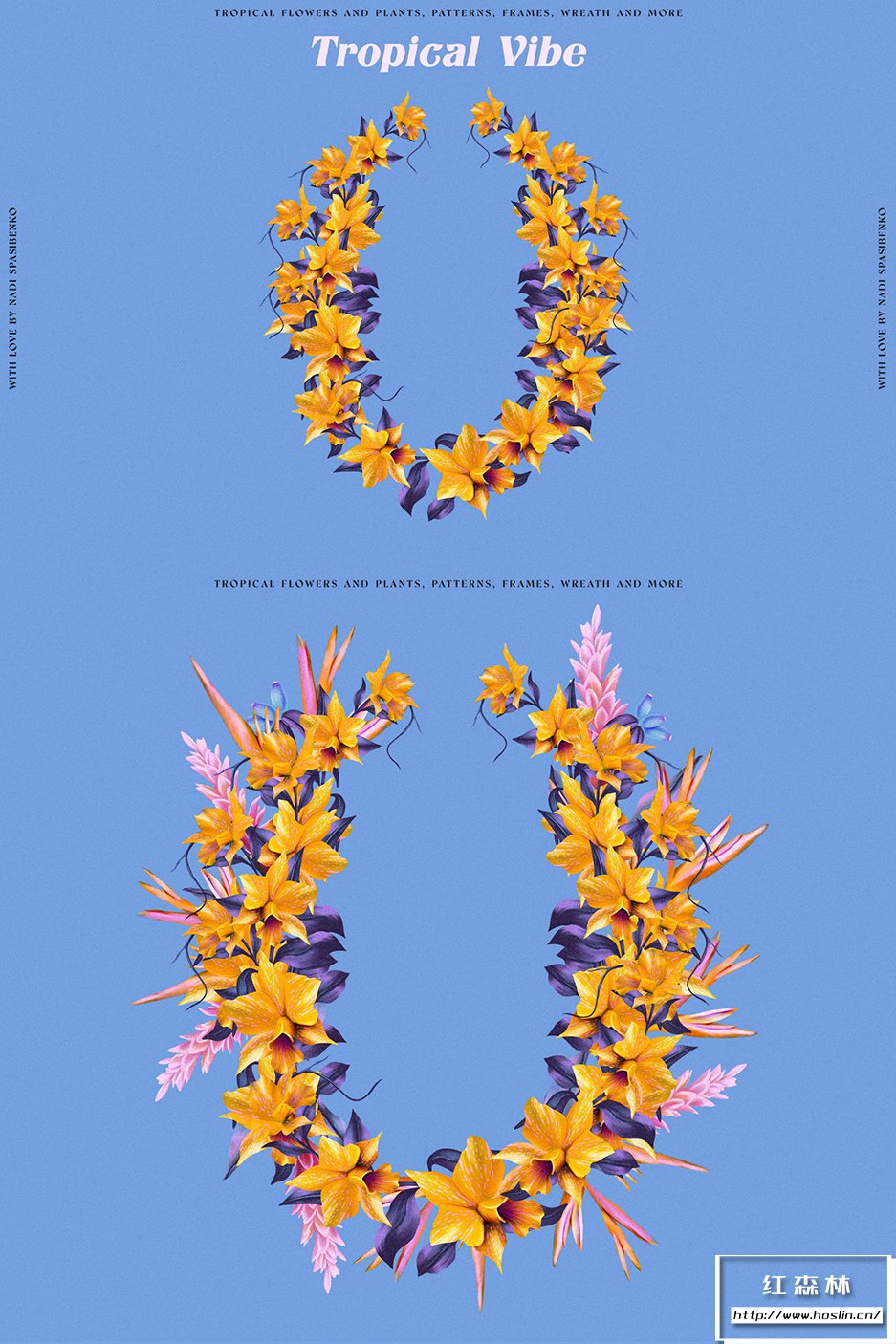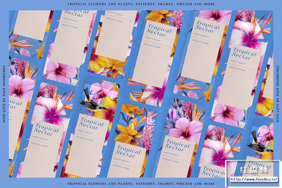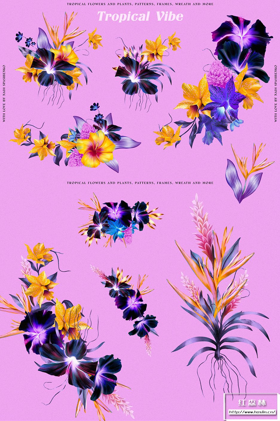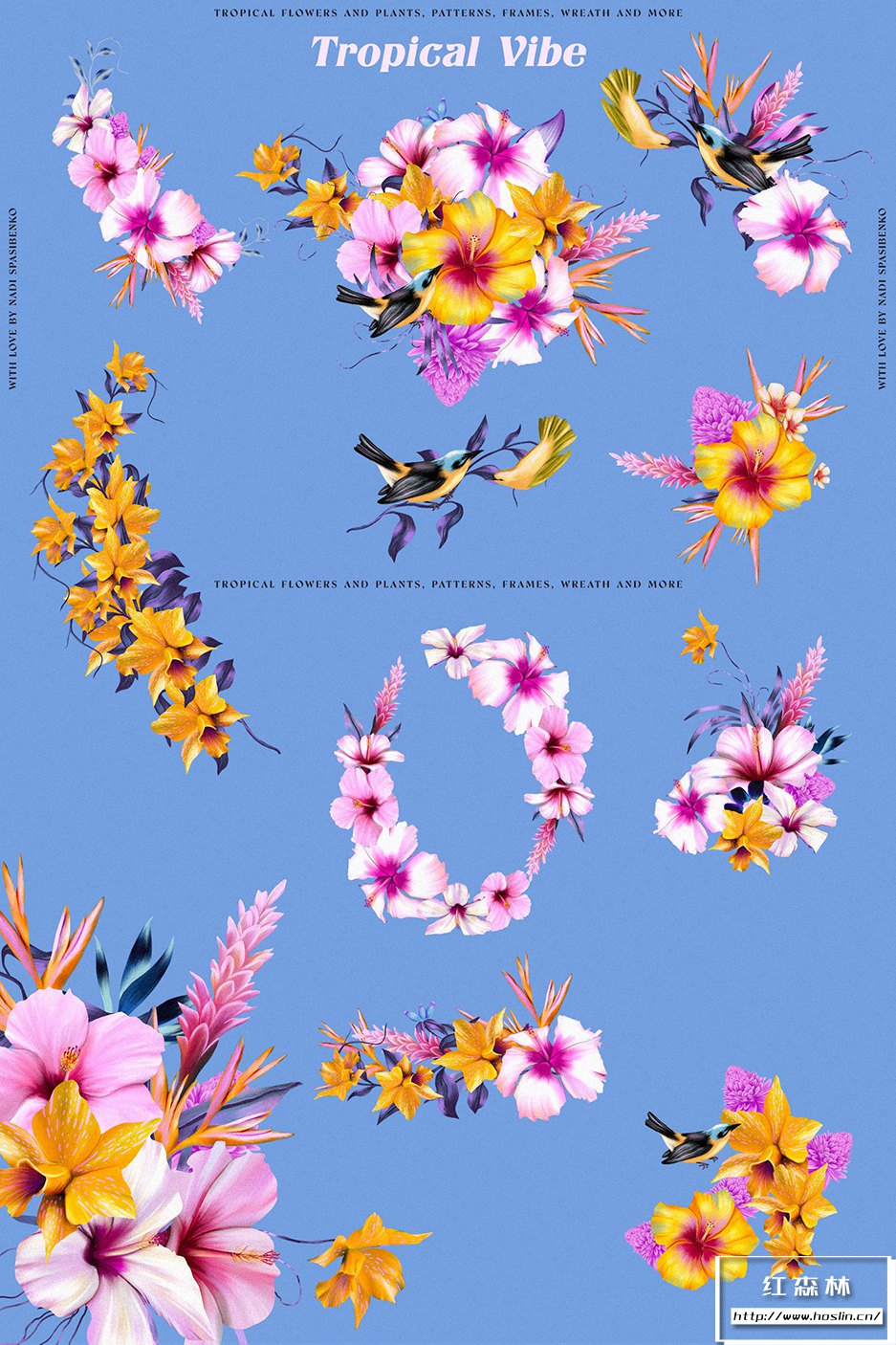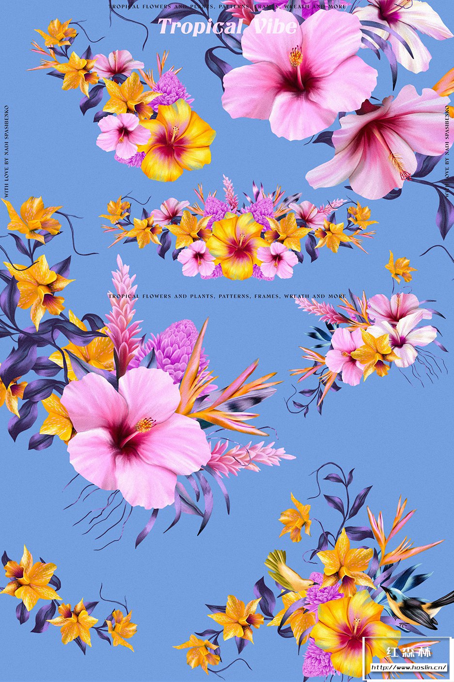 - 37种元素(2鸟、芙蓉、兰花、霓虹兰、鹤望兰等)