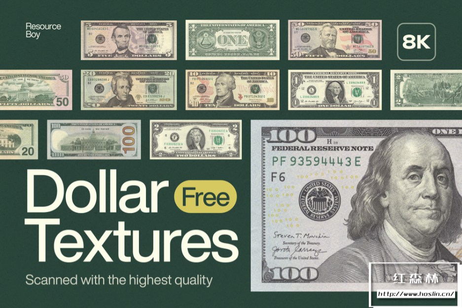 隆重推出 16 Dollar Textures,这是一组高品质图片纹理,可增强您的设计项目的真实性和深度。该包包含受不同材料和表面启发的各种纹理,例如木材、混凝土、金属和织物。16 Dollar Textures包含 1 美元、2 美元、5 美元、10 美元、20 美元、50 美元和 100 美元纸币的高分辨率 JPG,每张纸币的正面和背面都有。所有照片尺寸:7384*3276像素;
