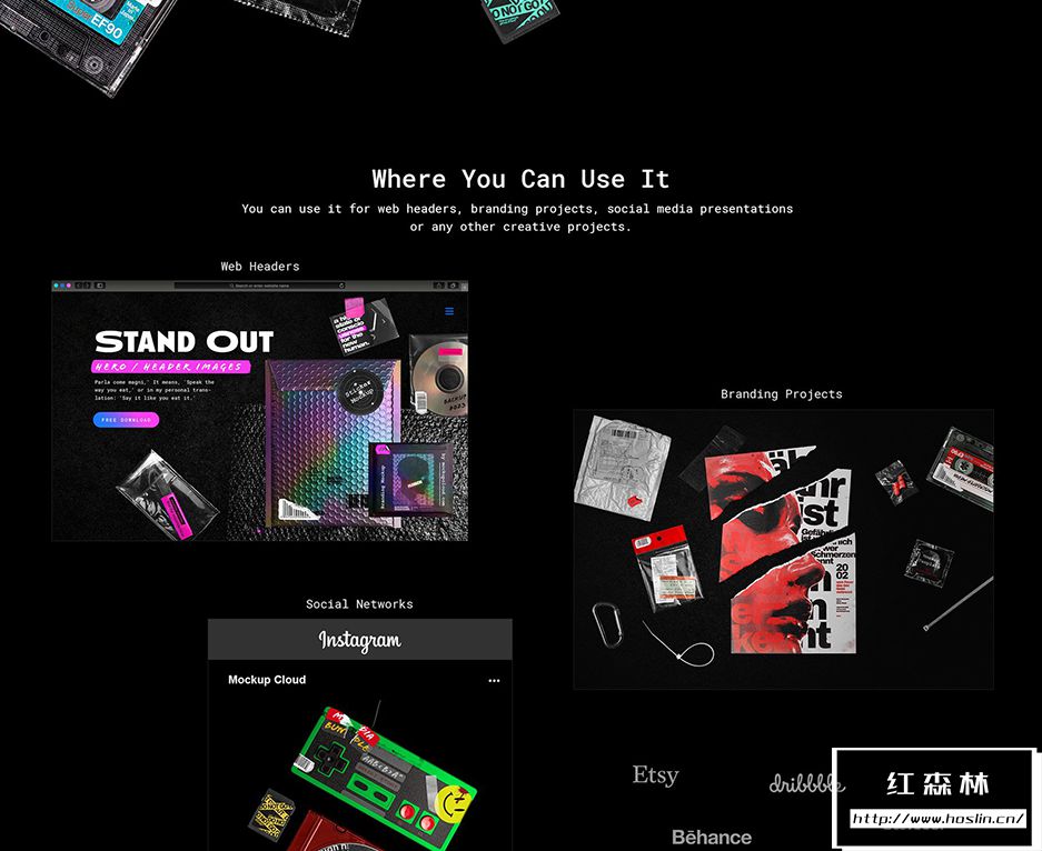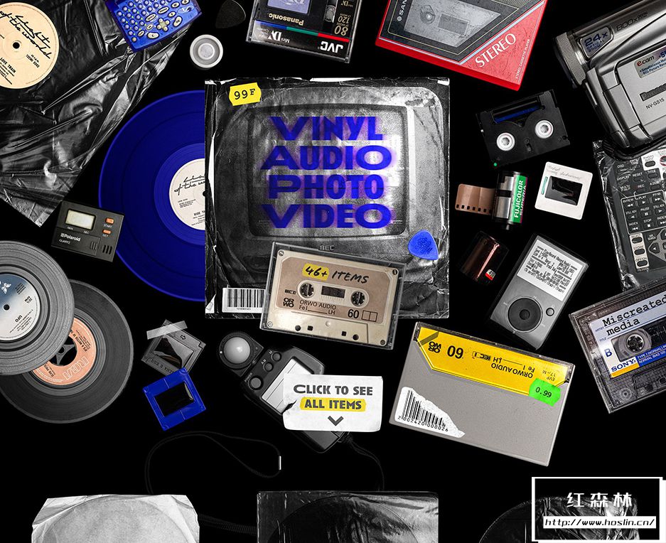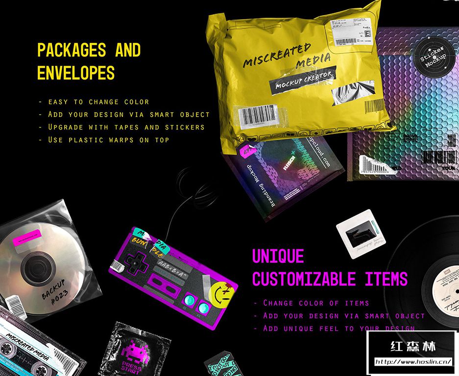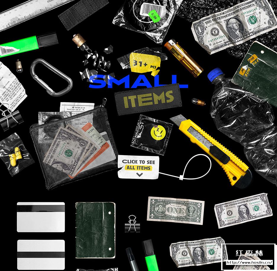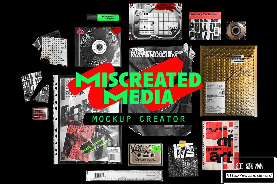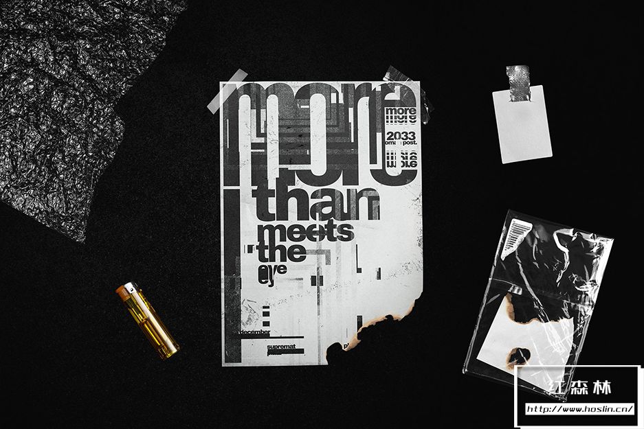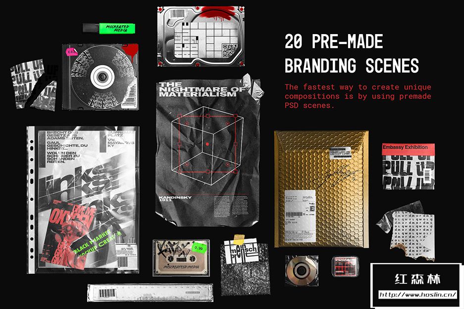 一系列独特的保鲜膜纹理、信头、海报、包装、胶带片、撕碎的纸张、贴纸以及各种时尚外观的物品。非常适合制作大胆、引人注目的当代设计。