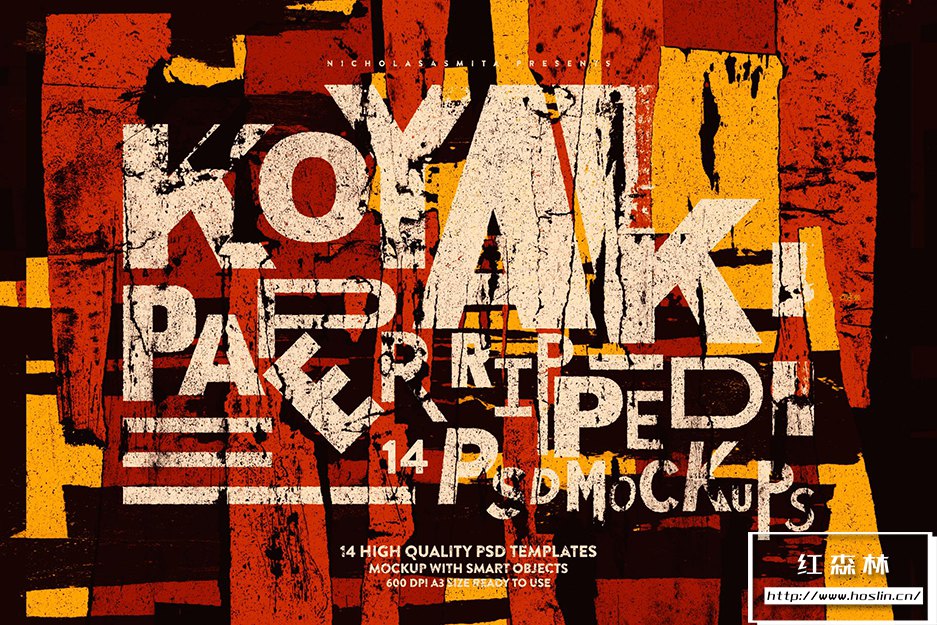 受到垃圾海报纹理、大师的拼贴艺术作品和布鲁克林街头艺术和丝网印刷场景中的 Faile 艺术品的启发,Koyak 是随时可用的 PSD 样机模板,只需将您的艺术品放入已放置的智能对象中,然后保存即可!完毕。使用真正的纸张撕破艺术品,以高分辨率扫描,将其转换为数字版本,并在 Photoshop 中进行详细制作,让您可以轻松对其进行修改。