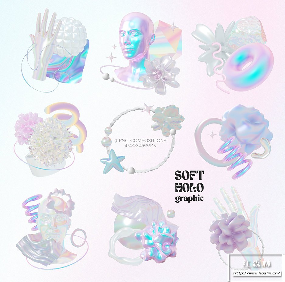 如果您想快速轻松地将全息趋势融入您的设计中,那么这款 3D 形状非常适合您!易于使用 – 每个图像都以 PNG 格式提供,因此您可以在您喜欢的每个图形软件中使用它们。