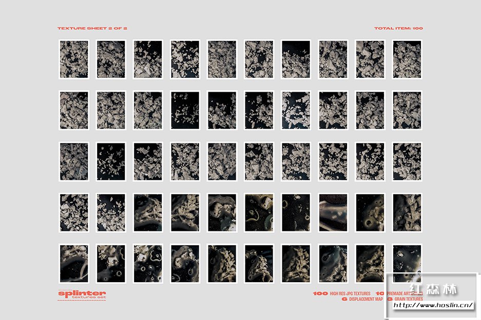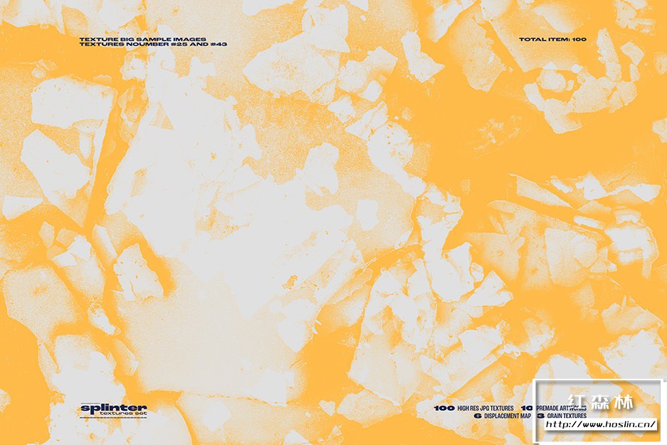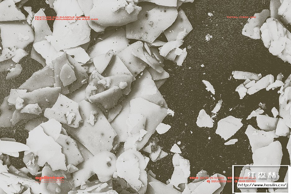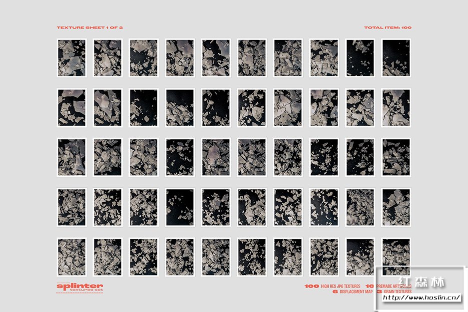 - 100 种高分辨率 JPG 碎片纹理(4000×3000 像素,300 DPI)