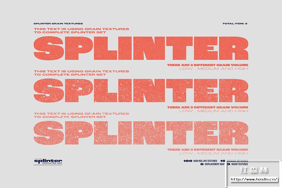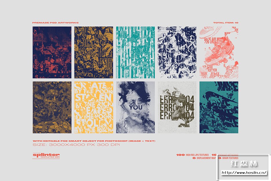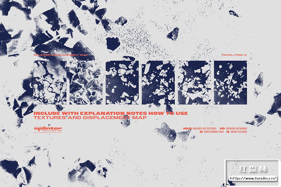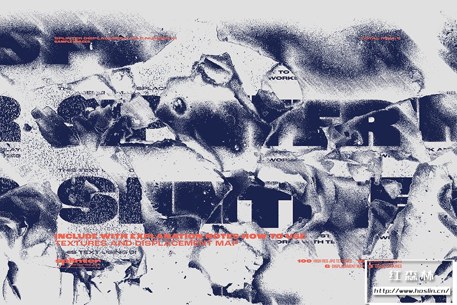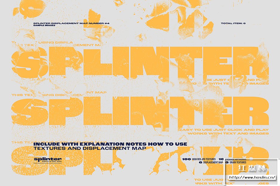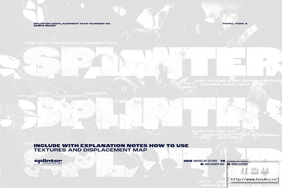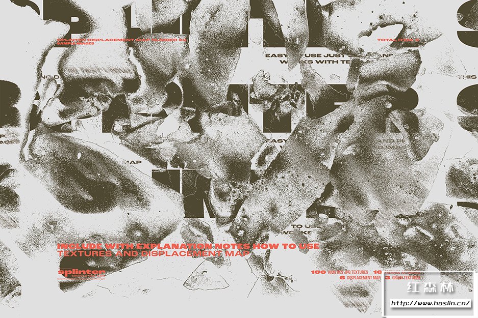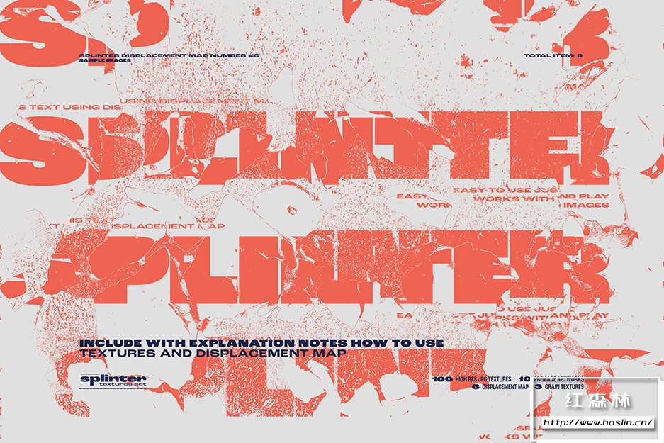 在 100 DPI 和 300 种置换贴图中提供 6 张具有高分辨率的高度策划纹理图像,该纹理集可以以多种方式使用,包括打印和数字使用。还包括一个关于如何使用纹理和置换贴图的小教程。作为奖励,您还可以获得预制的 6 个 PSD 艺术品,向您展示如何使用纹理并将它们与图像或纹理相结合。或者你可以用你的作品和理想的排版代替它。