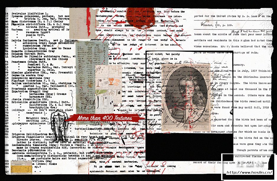 使用这些多功能纹理发挥创意,为您的设计增添一丝复古魅力!文件大小:1.09G