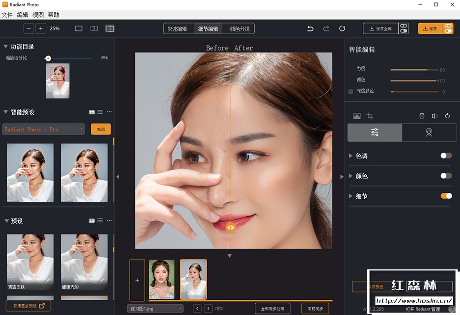 Radiant Imaging Labs 是一家完全由摄影师创建的公司,我们根据广泛的综合经验和对摄影的热爱设计了 Radiant Photo。我们坚信,每张照片都值得光芒四射,并且编辑过程应该尽可能强大,但绝不会让人不知所措或感到困惑。Radiant Photo 使用Perfectly Clear引擎处理图像。这项值得信赖的技术是世界领先的智能图像校正,每天处理超过 140+ 百万张图像。Radiant Photo 使用全球大多数专业照片打印实验室所信赖的同样优质的图像处理核心。