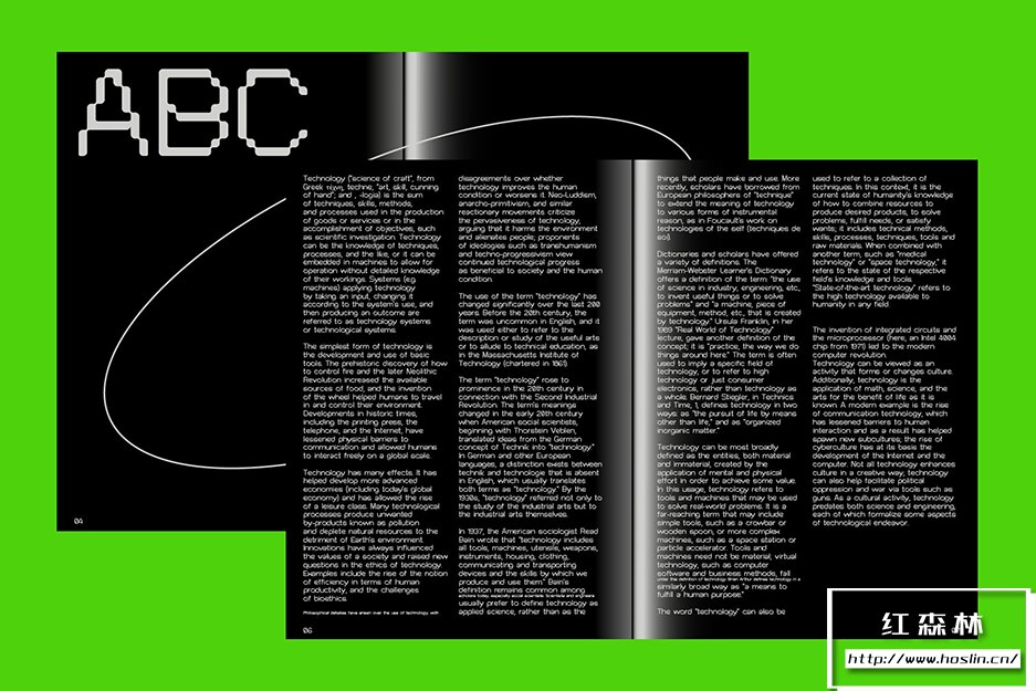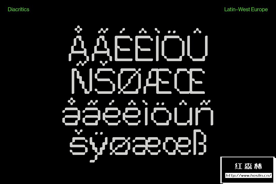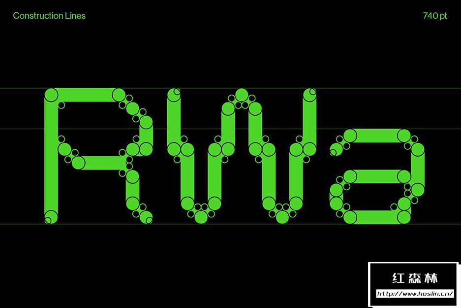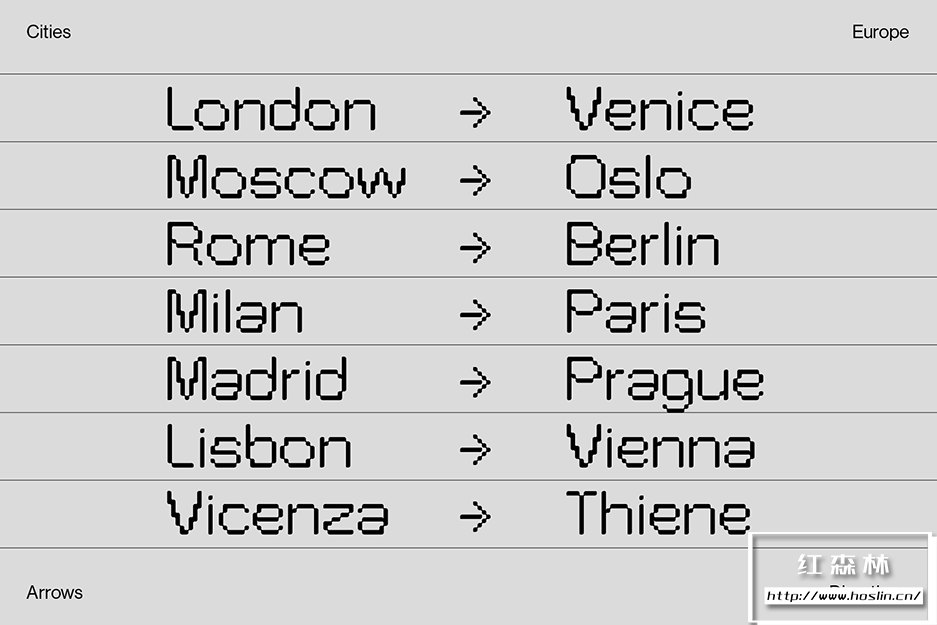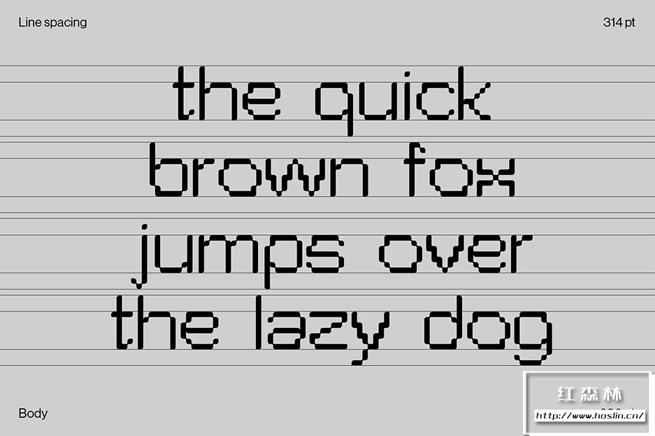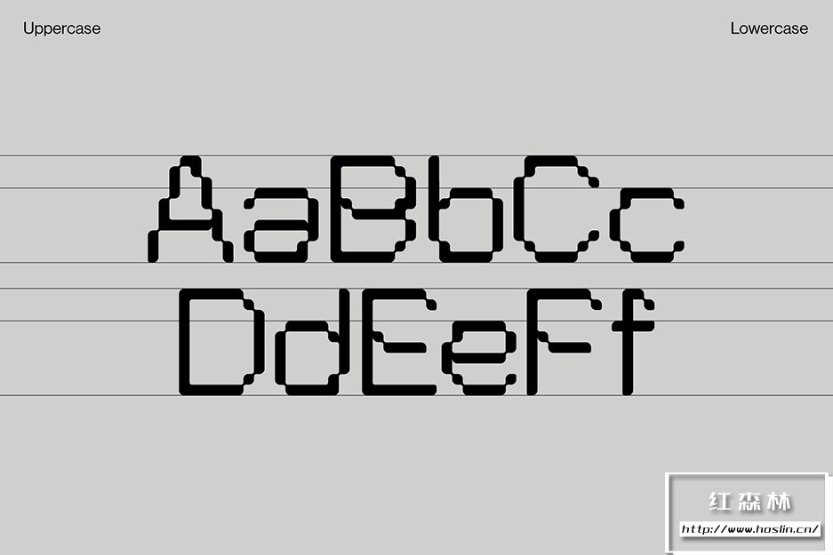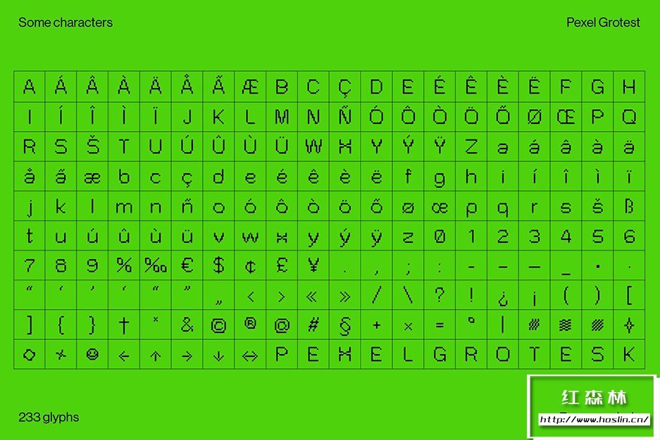 Pexel Grotesk©模仿怪诞字体的字母尺寸和比例,同时保持在严格的网格内。边缘的圆度听起来像是像素类型的矛盾修辞,却为该类型提供了有趣的形状,特别是在大格式中使用时。