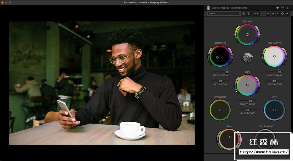 Warping Wheels 具有肤色保护功能的色轮和用于皮肤、天空、绿色植物和胶片对比度的专用色轮控制。使用外观生成器,您总能找到一个良好的外观起点。 v3新功能: Apple Silicon 支持、跨主机预设工具栏、新控件等等!