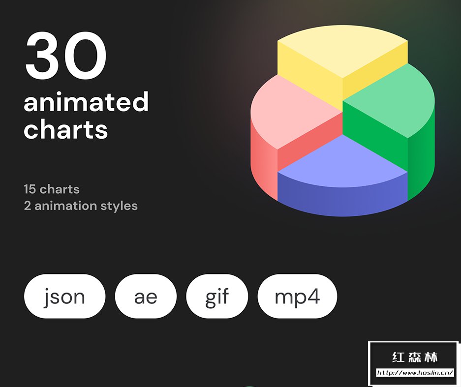 30 个动画图表:15 个图表 2 种循环动画风格。非常适合入门、登陆页面、移动应用程序、网站、广告、网站、社交媒体或演示。