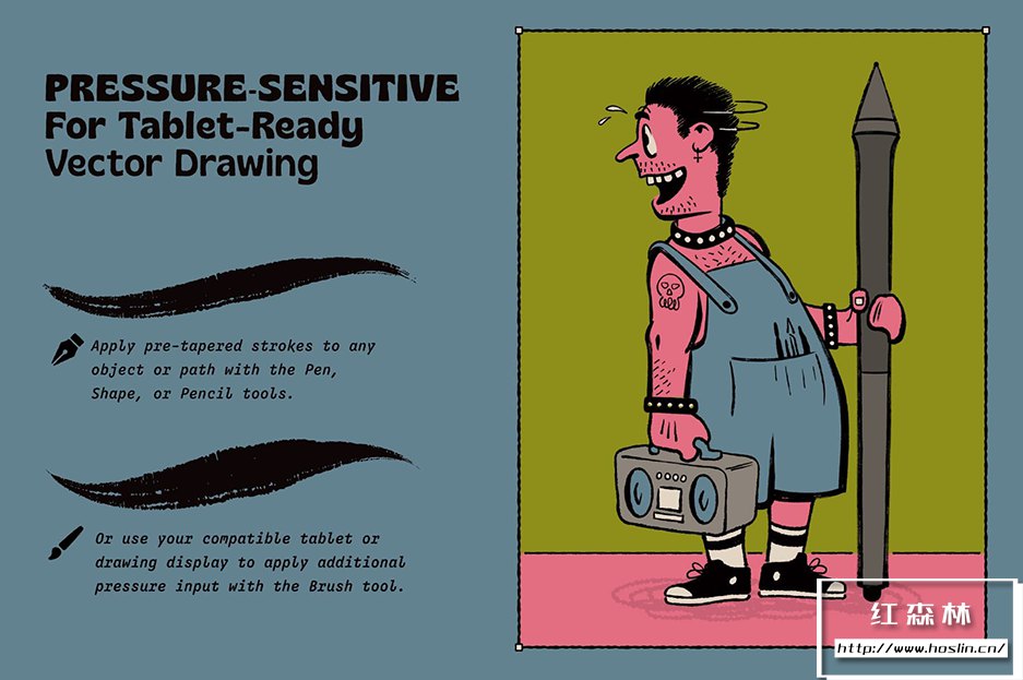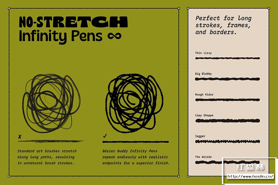 Bézier Buddy 拥有超过 150 种多功能矢量画笔,是您 Adobe Illustrator 的终极矢量墨迹伙伴。告别笨拙的线条,多种笔划尺寸设计用于适应几乎任何线条长度,平板电脑优化的压力设置,几乎没有拉伸或压缩。