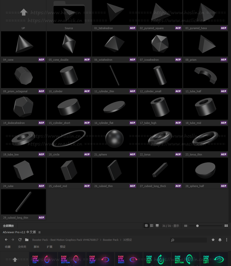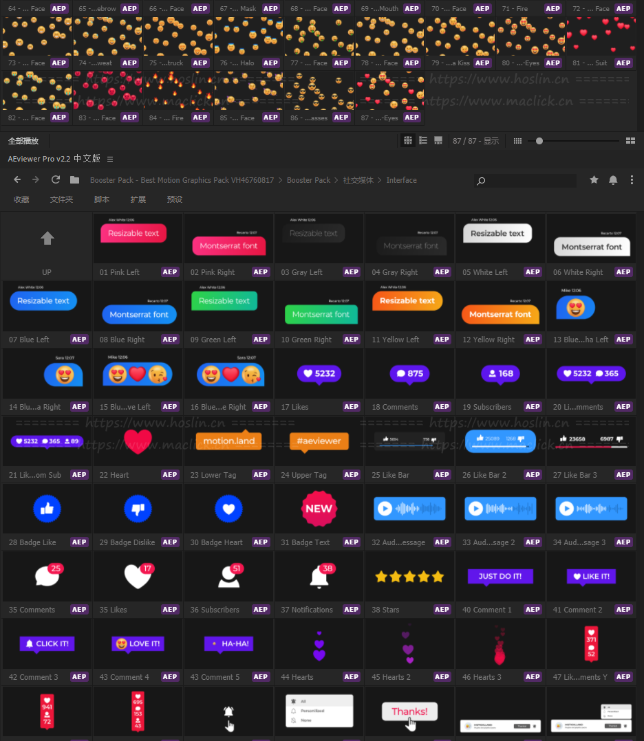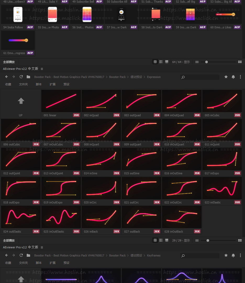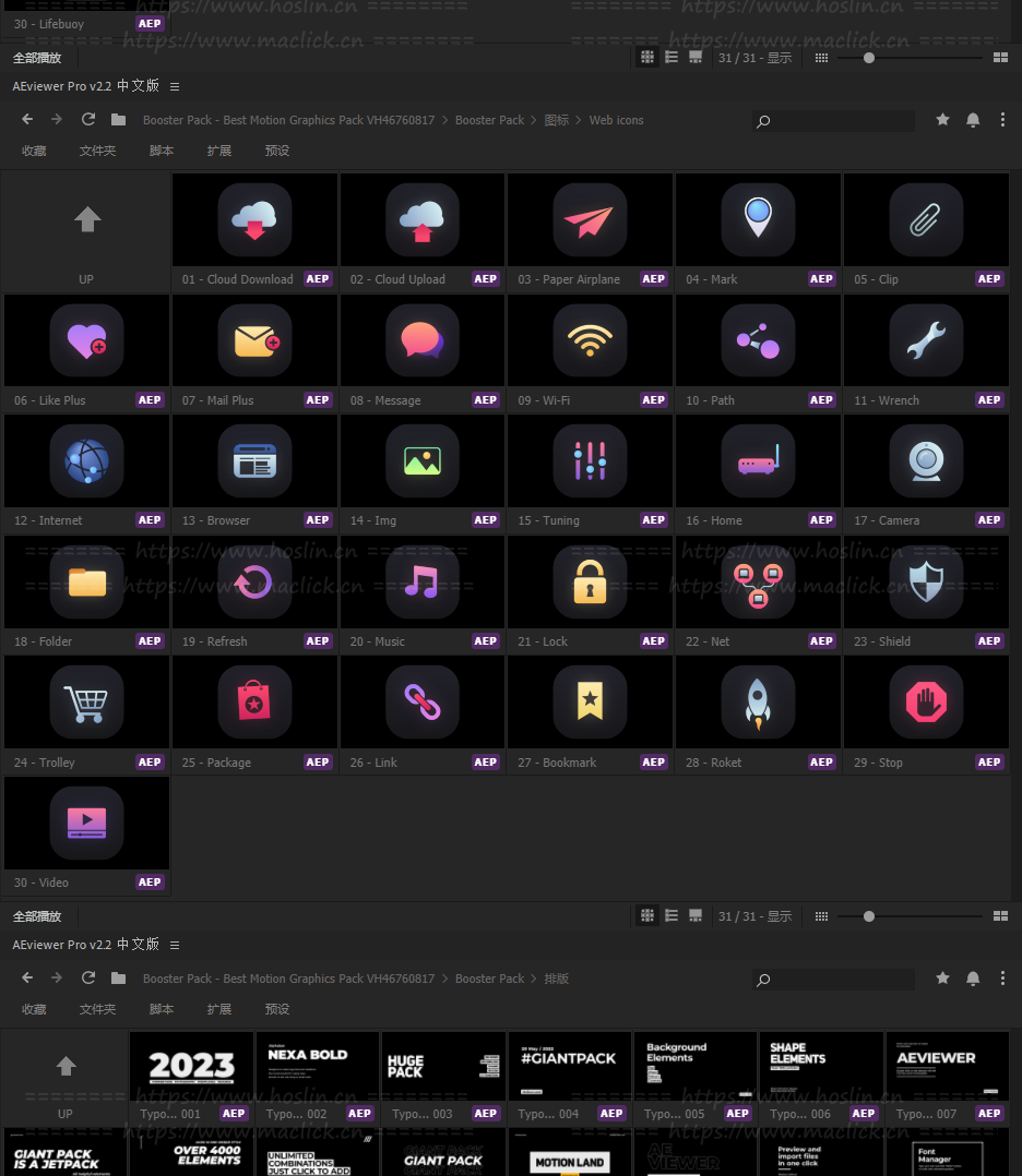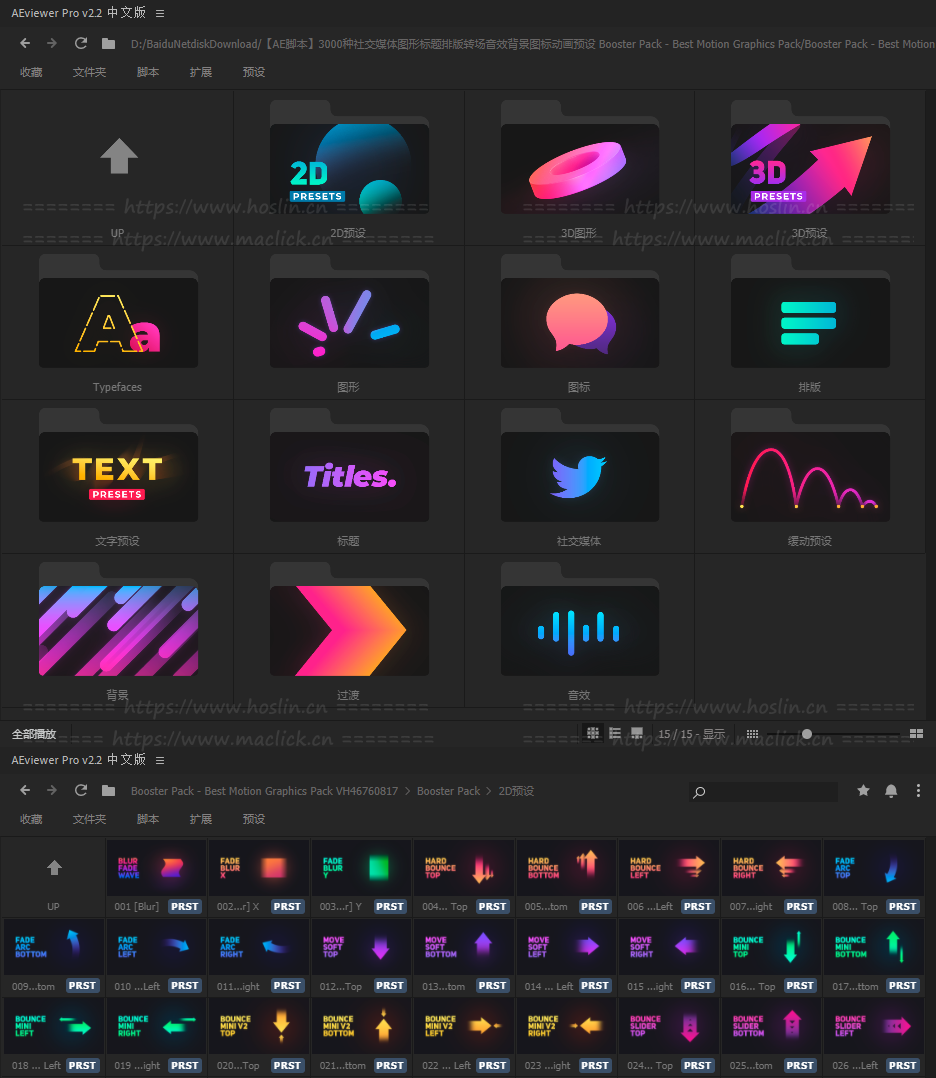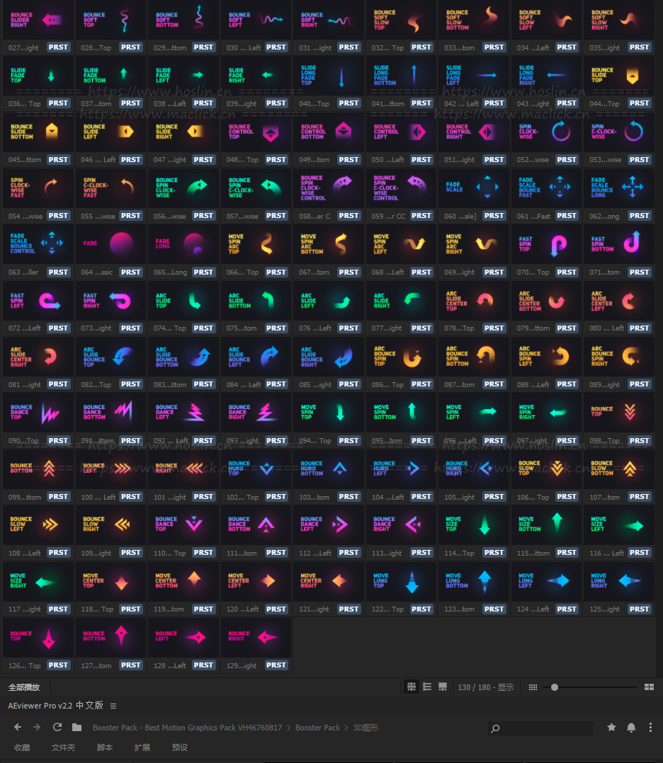 Booster Pack是最适合After Effects的动态图形包,拥有超过3000个元素15众类别。它包括视频的所有基本组件:排版、背景、过渡、缓动预设、大量2D、3D和文本预设、社交媒体图形、动画字体、图标等等。所有图形元素的设计都经过精心设计和对细节的关注,以确保它们具有令人难以置信的用户友好性并适合所有级别的专业知识。只需点击几下即可完成任何运动任务。使用AEViewer脚本调用,可视化管理预览直接点击即可使用。